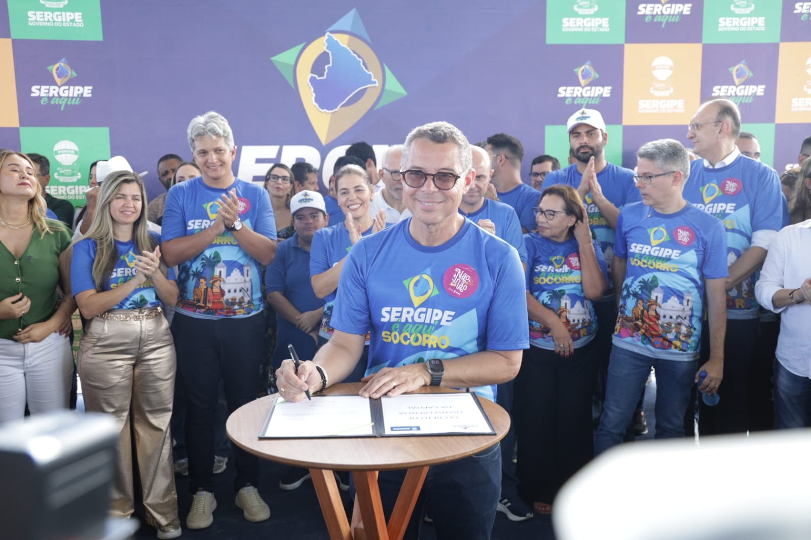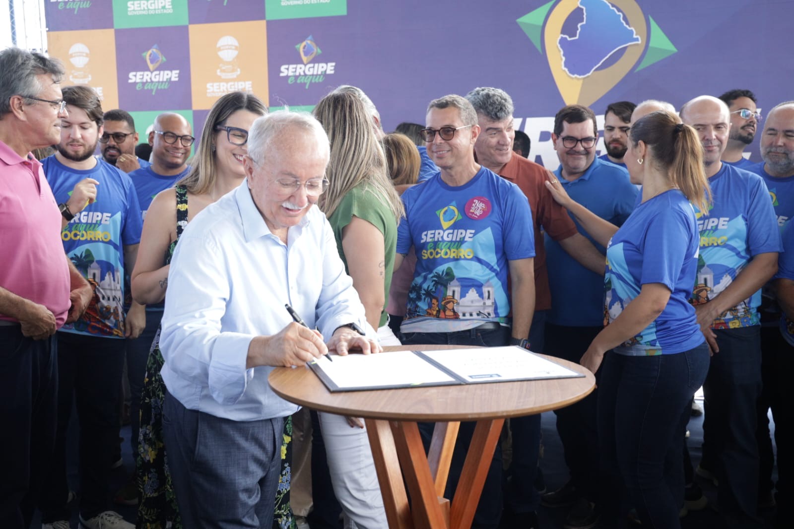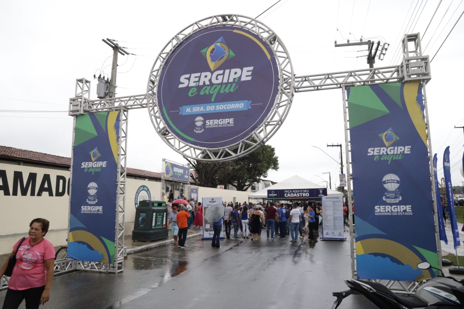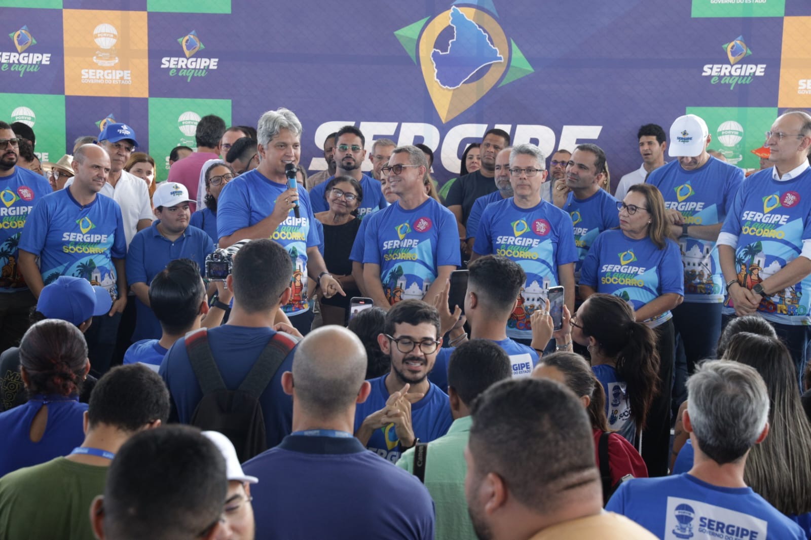 O governador Fábio Mitidieri destacou a importância da ação em Nossa Senhora do Socorro, afirmando: “Primeira edição aqui em Socorro, prestes a Socorro completar 161 anos. Aniversário da cidade, a gente comemora aqui, transferindo a capital do Sergipe para Socorro, trazendo mais uma edição do Sergipe Aqui. Essa é a maior edição, até pelo tamanho e pela importância da cidade. A gente espera hoje, mesmo com um pouquinho de chuva — que é Deus abençoando — um grande evento, com grande participação popular, trazendo mais de 160 serviços e toda a estrutura do governo para cá. Não tenho dúvidas de que vai ser um sucesso. Hoje também entregamos mais uma escola, mantendo nossa média de uma escola a cada 12 dias. Além disso, vamos assinar ordens de serviço importantes, como a ampliação do Hospital de Socorro, que atende 14 municípios, obras de asfalto, paralelepípedo e, principalmente, vamos dar início a um sonho do povo de Socorro, que é a autorização para publicação do edital da obra do Guajará — mais de 130 milhões de reais de investimento, uma obra que vai transformar a realidade de muita gente.”