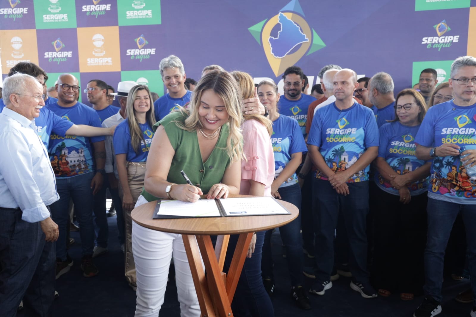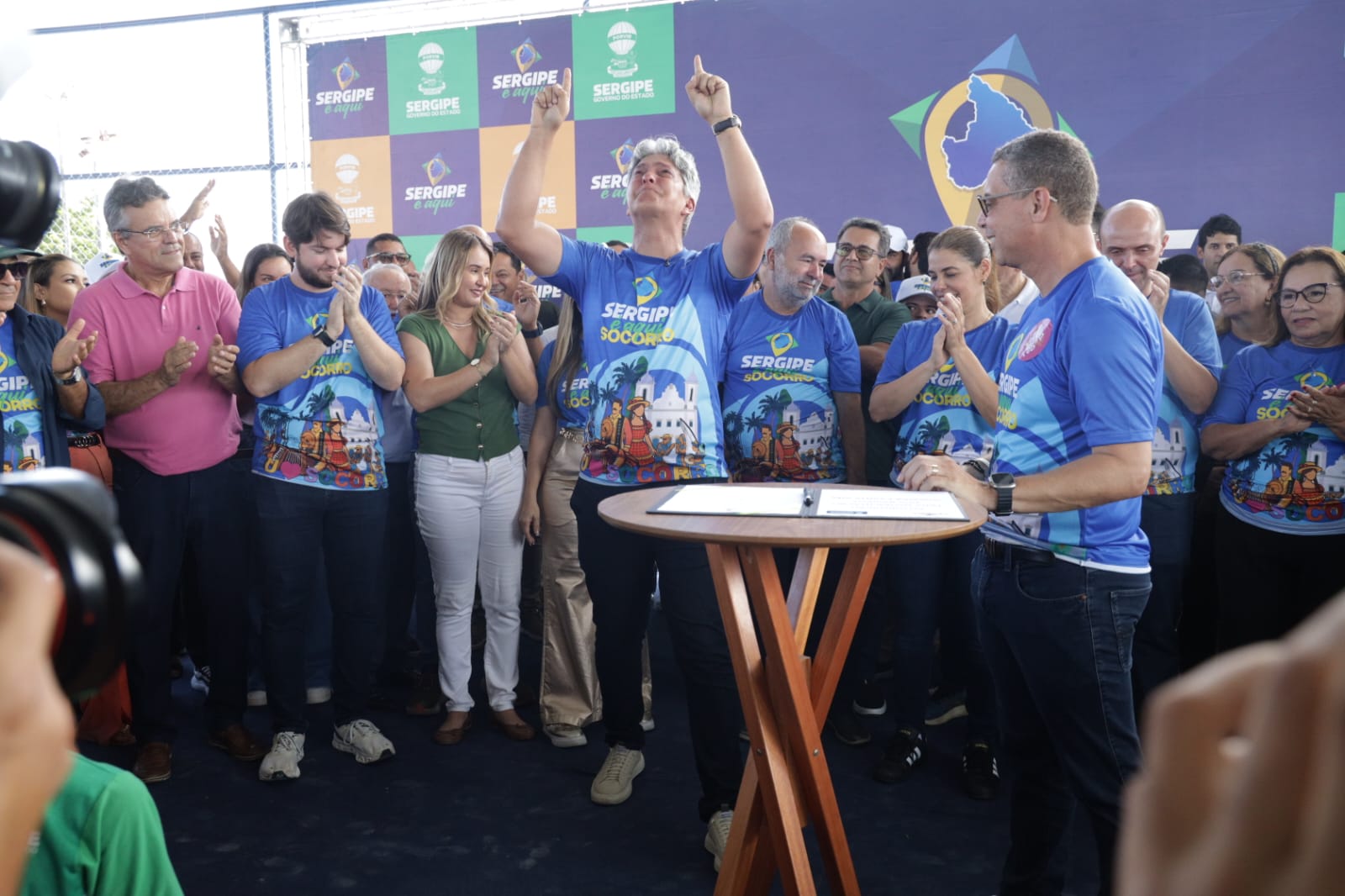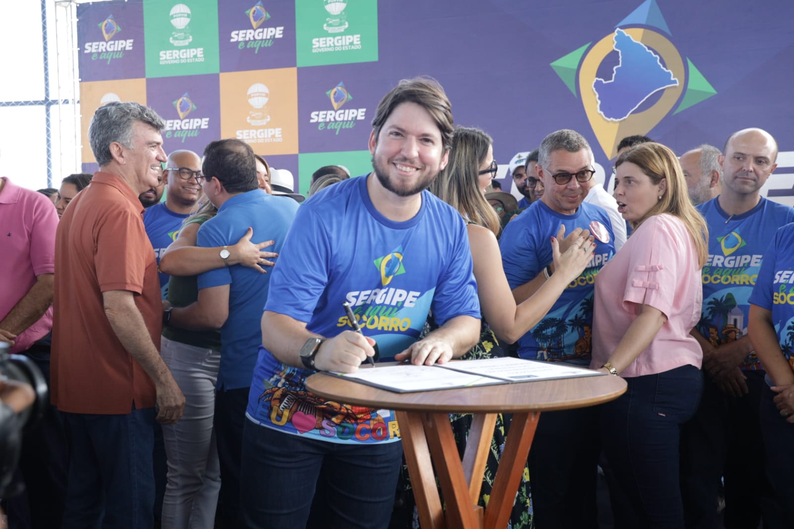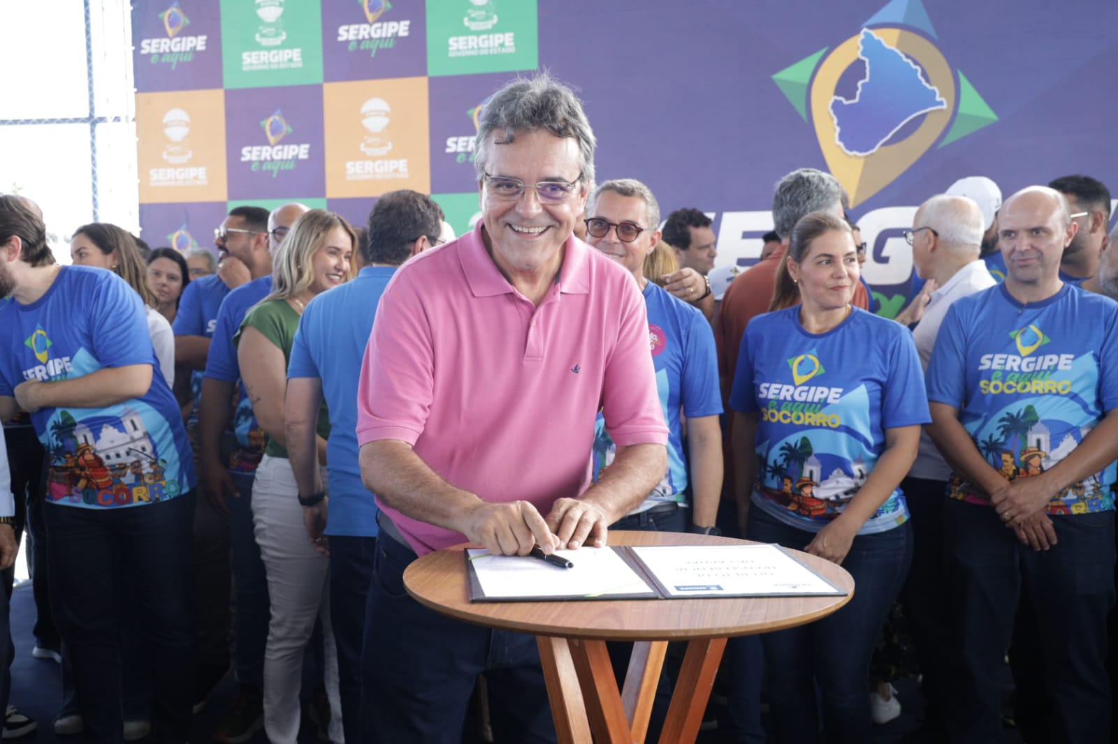 O governador Fábio Mitidieri destacou a importância da ação em Nossa Senhora do Socorro, afirmando: “Primeira edição aqui em Socorro, prestes a Socorro completar 161 anos. Aniversário da cidade, a gente comemora aqui, transferindo a capital do Sergipe para Socorro, trazendo mais uma edição do Sergipe Aqui. Essa é a maior edição, até pelo tamanho e pela importância da cidade. A gente espera hoje, mesmo com um pouquinho de chuva — que é Deus abençoando — um grande evento, com grande participação popular, trazendo mais de 160 serviços e toda a estrutura do governo para cá. Não tenho dúvidas de que vai ser um sucesso. Hoje também entregamos mais uma escola, mantendo nossa média de uma escola a cada 12 dias. Além disso, vamos assinar ordens de serviço importantes, como a ampliação do Hospital de Socorro, que atende 14 municípios, obras de asfalto, paralelepípedo e, principalmente, vamos dar início a um sonho do povo de Socorro, que é a autorização para publicação do edital da obra do Guajará — mais de 130 milhões de reais de investimento, uma obra que vai transformar a realidade de muita gente.”