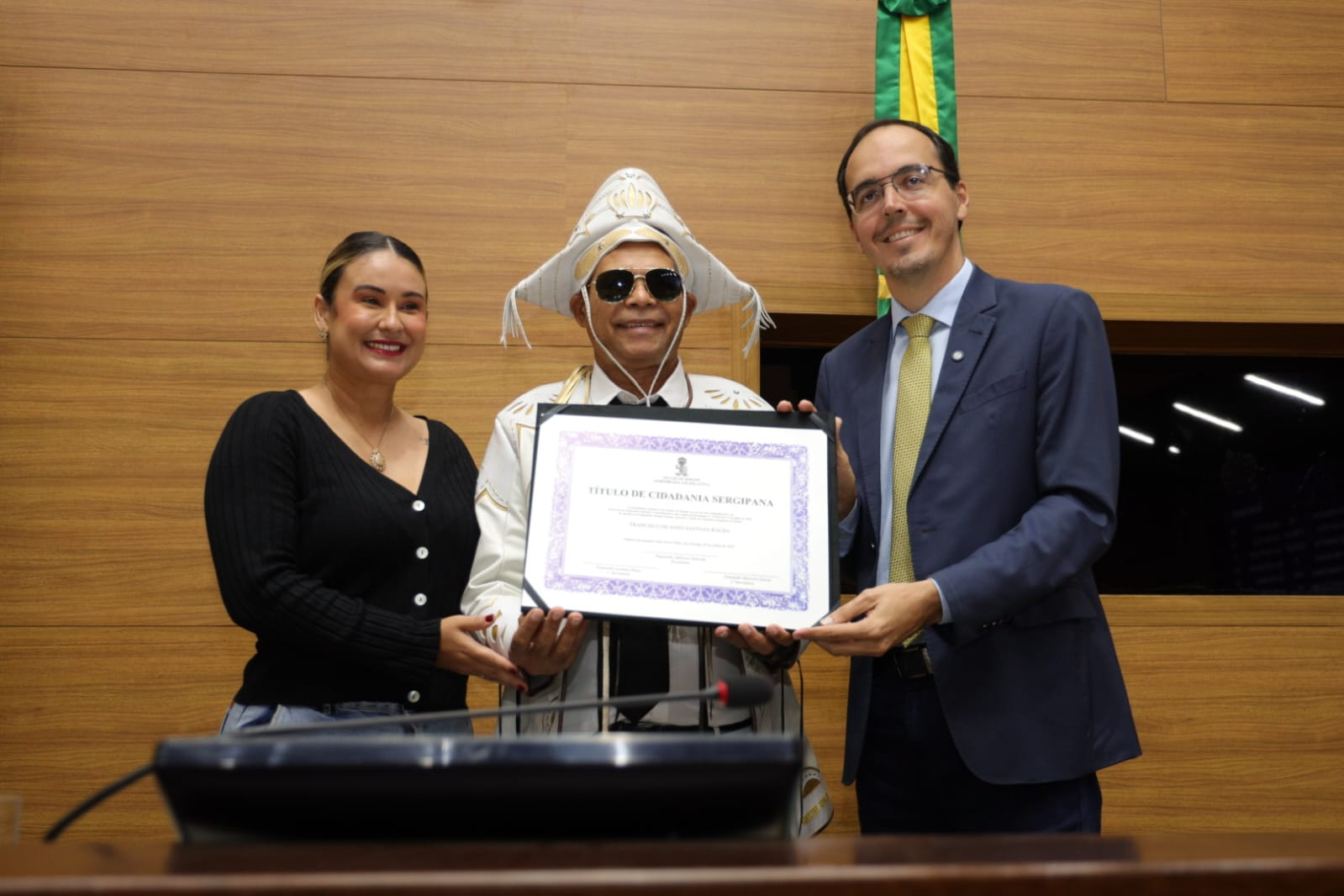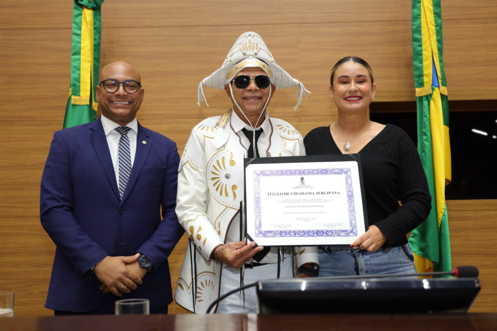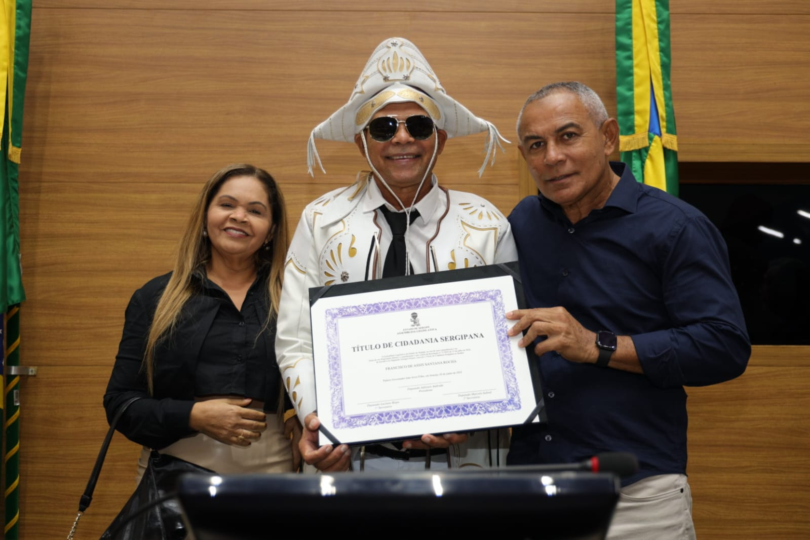 Com a voz embargada, Santana revelou que seu amor por Sergipe se transformou em sonho e, agora, em realidade: “Sergipe me acolheu como filho, e hoje me sinto parte desta terra. Essa homenagem é um sonho realizado. Sinto-me profundamente lisonjeado por receber esse título tão significativo. A gente não escolhe o lugar onde nasce, mas tem o privilégio de escolher onde deseja viver. Cheguei a Aracaju em 2001, transferido pela Força Aérea Brasileira, e logo me encantei com essa cidade acolhedora, com essa terra fértil para o forró, ritmo que sempre esteve presente na minha vida, herdado do meu pai, que era fã e intérprete de Luiz Gonzaga. Me apaixonei por Sergipe de tal forma que pensei: ‘Um dia, ainda vou ser sergipano’. E esse dia chegou. Hoje, 2 de junho de 2025, recebo essa honraria na Assembleia Legislativa com o coração cheio de gratidão. Tenho orgulho em dizer que agora sou sergipano de direito. Estou no lugar certo, entre um povo generoso, que sabe receber e valorizar quem escolhe esta terra para viver. Fazer parte da história de Sergipe é uma alegria imensa”, declarou.