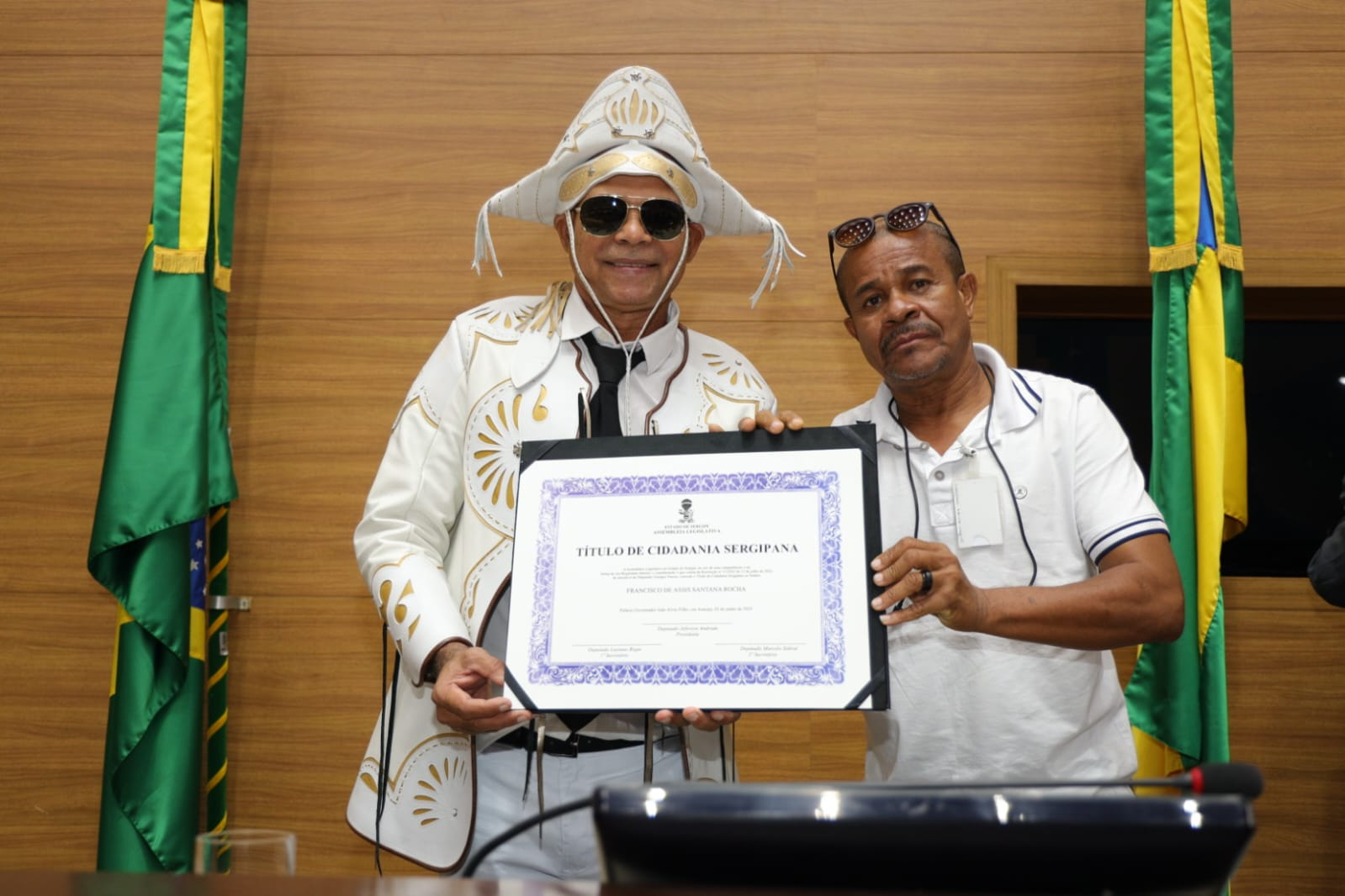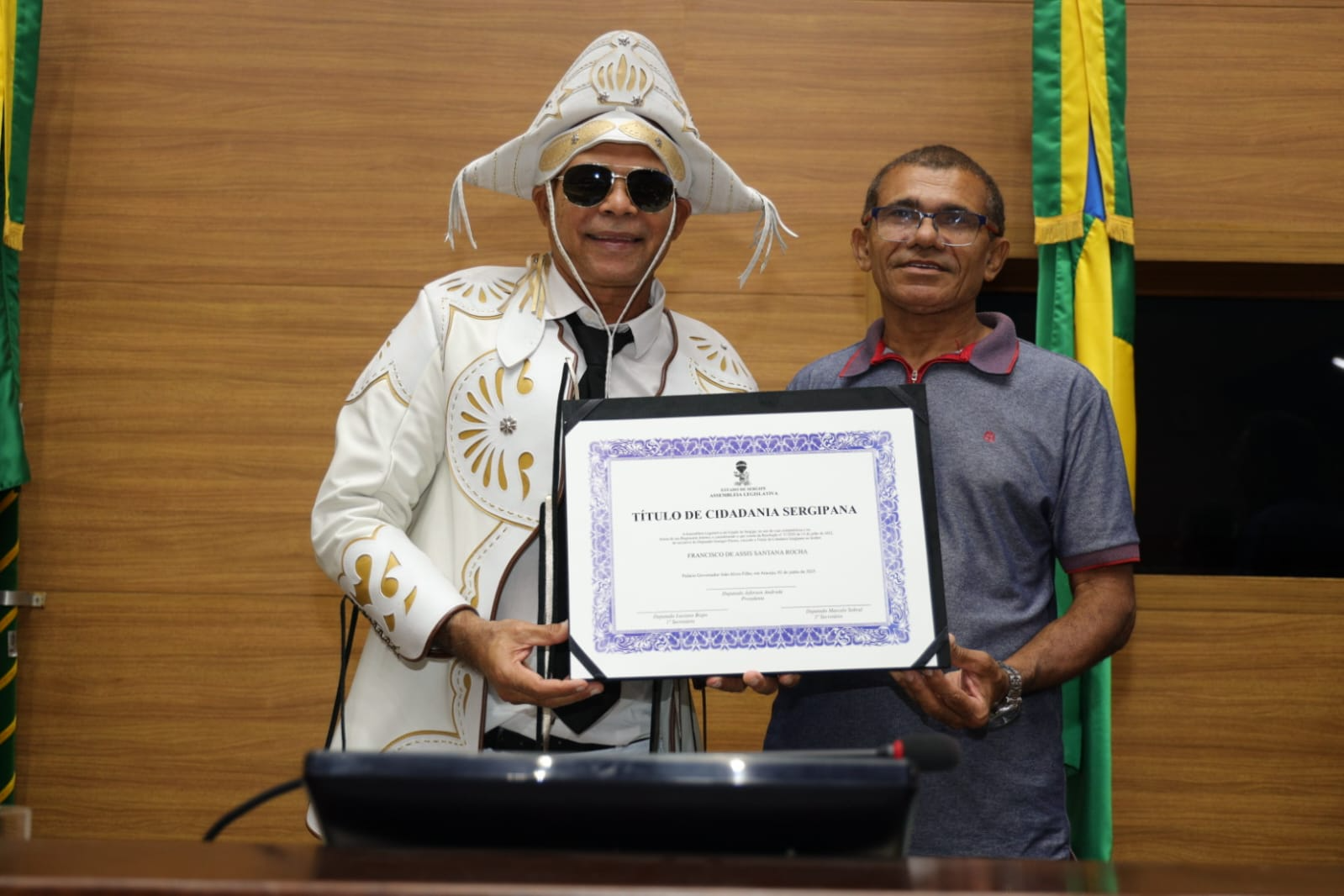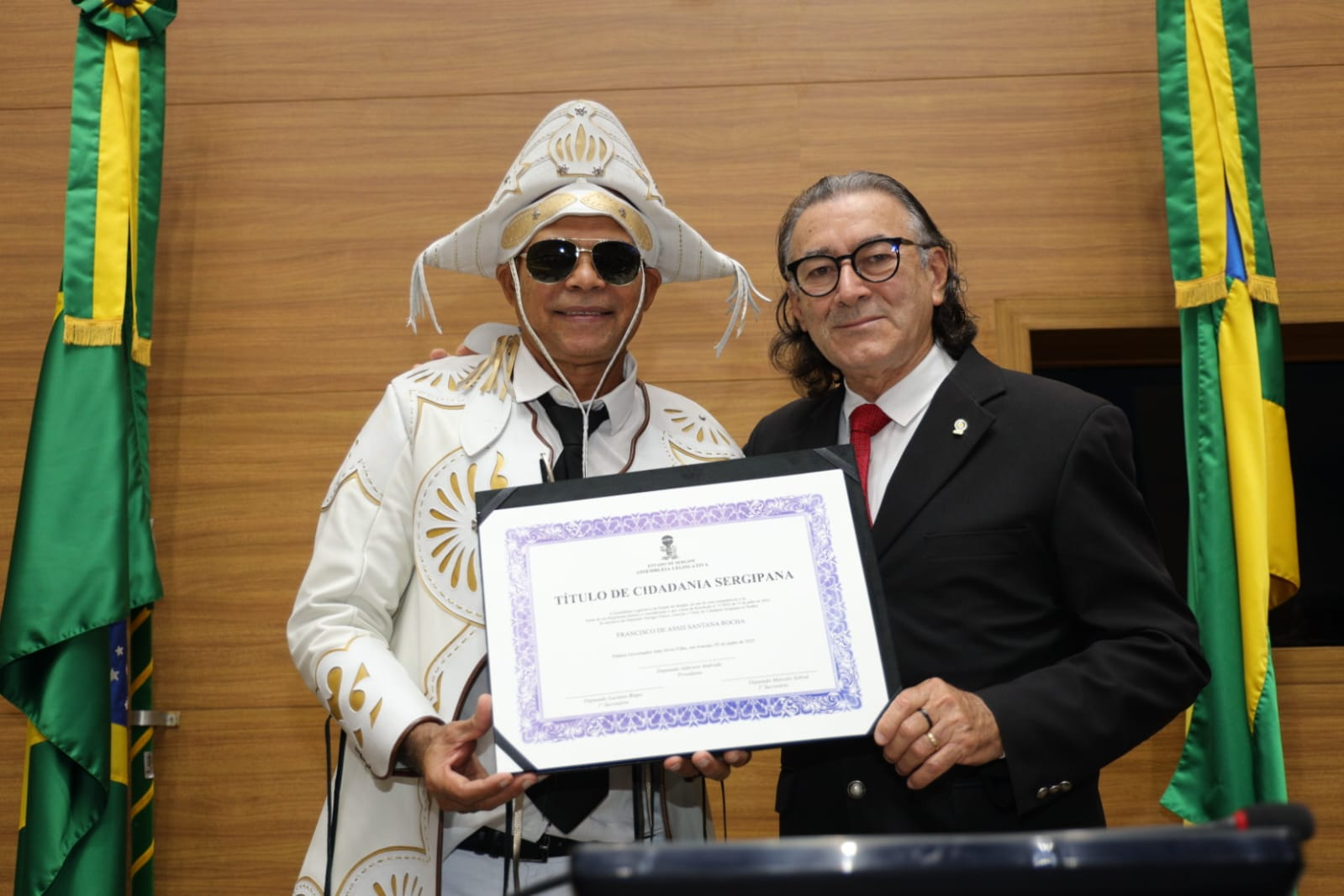 “Santana merece esse reconhecimento não apenas pela sua trajetória exemplar como militar da Força Aérea Brasileira e músico da Aeronáutica, mas principalmente por sua entrega à cultura popular nordestina. Conheço Santana desde que chegou a Sergipe, e posso afirmar: ele não é apenas um artista, é um verdadeiro pesquisador e guardião da obra de Luiz Gonzaga. Sua dedicação vai além do palco. Ele mergulha na história, percorre os caminhos de Gonzaga, conhece a família, os amigos, e mantém com todos uma relação de profundo respeito e amizade. É quase um sacerdócio cultural. Ele vive essa identidade com autenticidade e paixão. Por isso, parabenizo a Assembleia Legislativa e agradeço ao deputado Georgeo Passos por reconhecer o valor de alguém que já era sergipano de coração e que agora é, oficialmente, sergipano de direito. É uma justa e emocionante homenagem.”