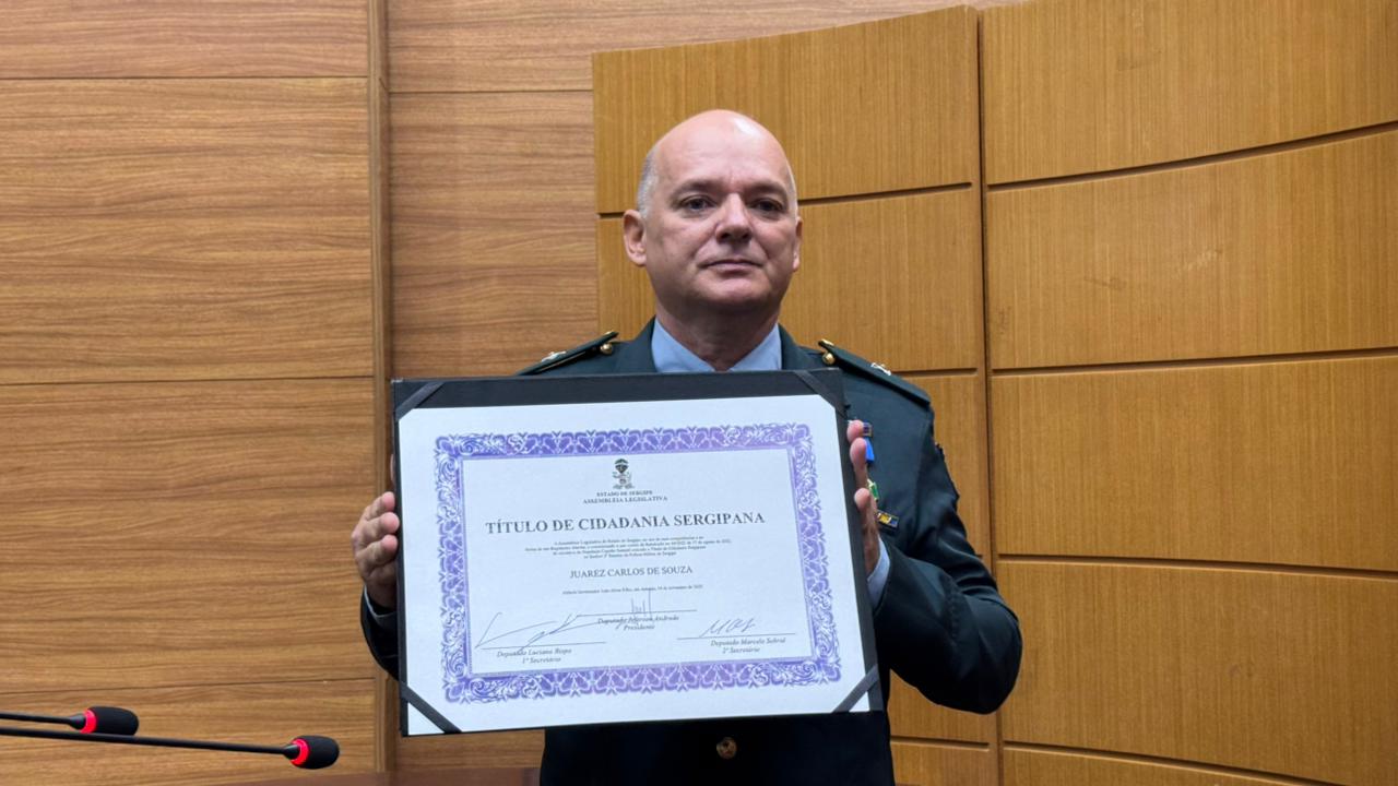 Nesta sexta-feira (14), os deputados da Assembleia Legislativa do Estado de Sergipe (Alese) concederam ao 2º Tenente da Polícia Militar (PMSE), Juarez Carlos de Souza, o Título de Cidadania Sergipana. A honraria reconhece sua trajetória de vida, os serviços prestados à sociedade e a dedicação à corporação militar, além de valorizar cidadãos que contribuem significativamente para o desenvolvimento humano, social e institucional do Estado. A iniciativa é de autoria do ex-deputado Capitão Samuel.