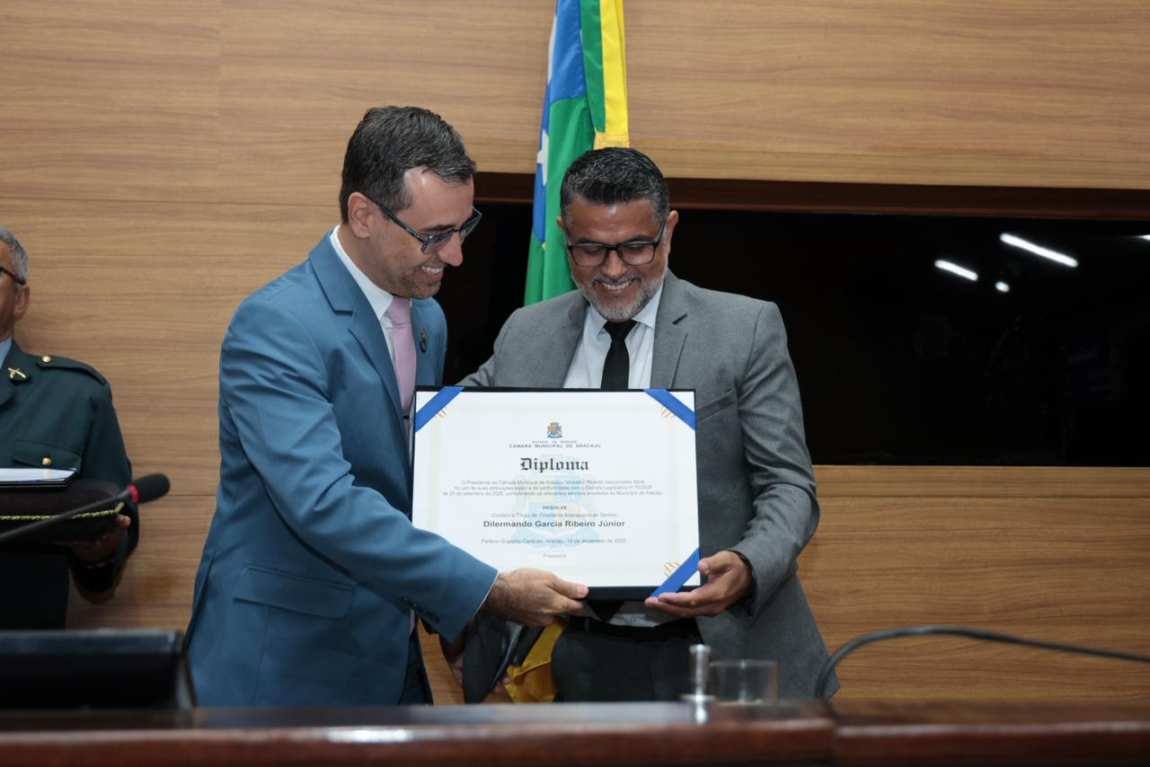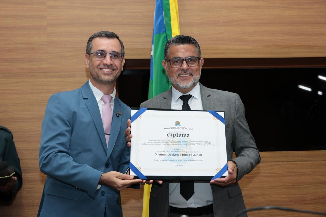 Atendendo a uma solicitação da Câmara Municipal de Aracaju, a solenidade foi marcada ainda por um gesto de integração entre os parlamentos estadual e municipal. Na mesma sessão, após o recebimento do Título de Cidadania Sergipana, os homenageados também foram agraciados com o Título de Cidadania Aracajuana. O secretário Dilermando Júnior recebeu a honraria concedida pelo vereador Lúcio Flávio, enquanto o vereador Lúcio Flávio foi agraciado com o título proposto pelo vereador Fábio Meireles (PDT).