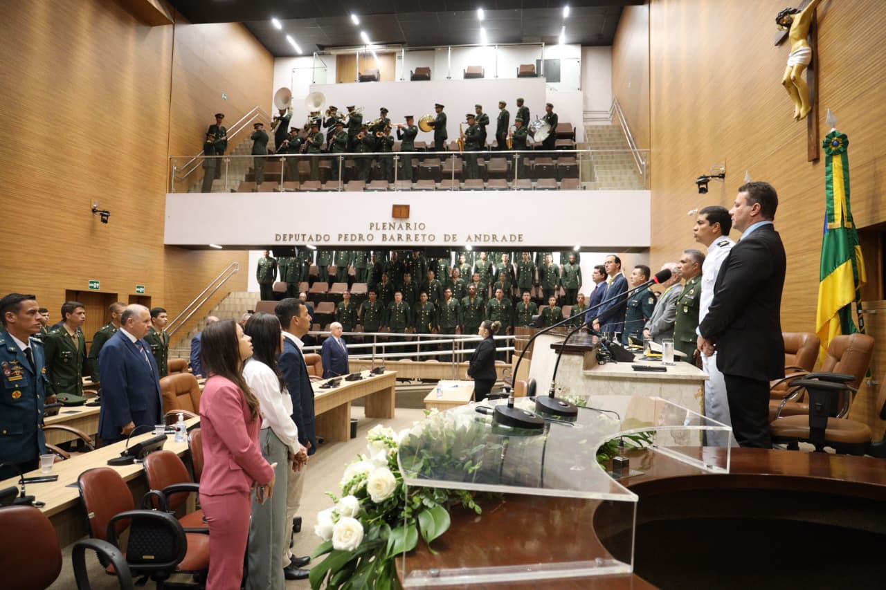 A solenidade reuniu autoridades civis e militares, parlamentares e convidados no plenário da Casa Legislativa.