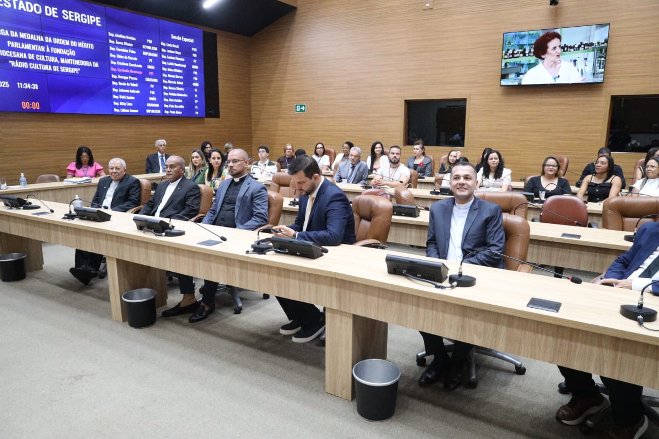 A Assembleia Legislativa do Estado de Sergipe (Alese) realizou, nesta terça-feira (18), no Plenário Pedro Barreto de Andrade, Sessão Especial de outorga da Medalha da Ordem do Mérito Parlamentar à Fundação Arquidiocesana de Cultura, mantenedora da Rádio Cultura de Sergipe. A solenidade, proposta pelo deputado Georgeo Passos (Cidadania), reconhece a relevante contribuição da instituição para a sociedade sergipana, especialmente nas áreas da cultura, da educação e da formação cidadã.