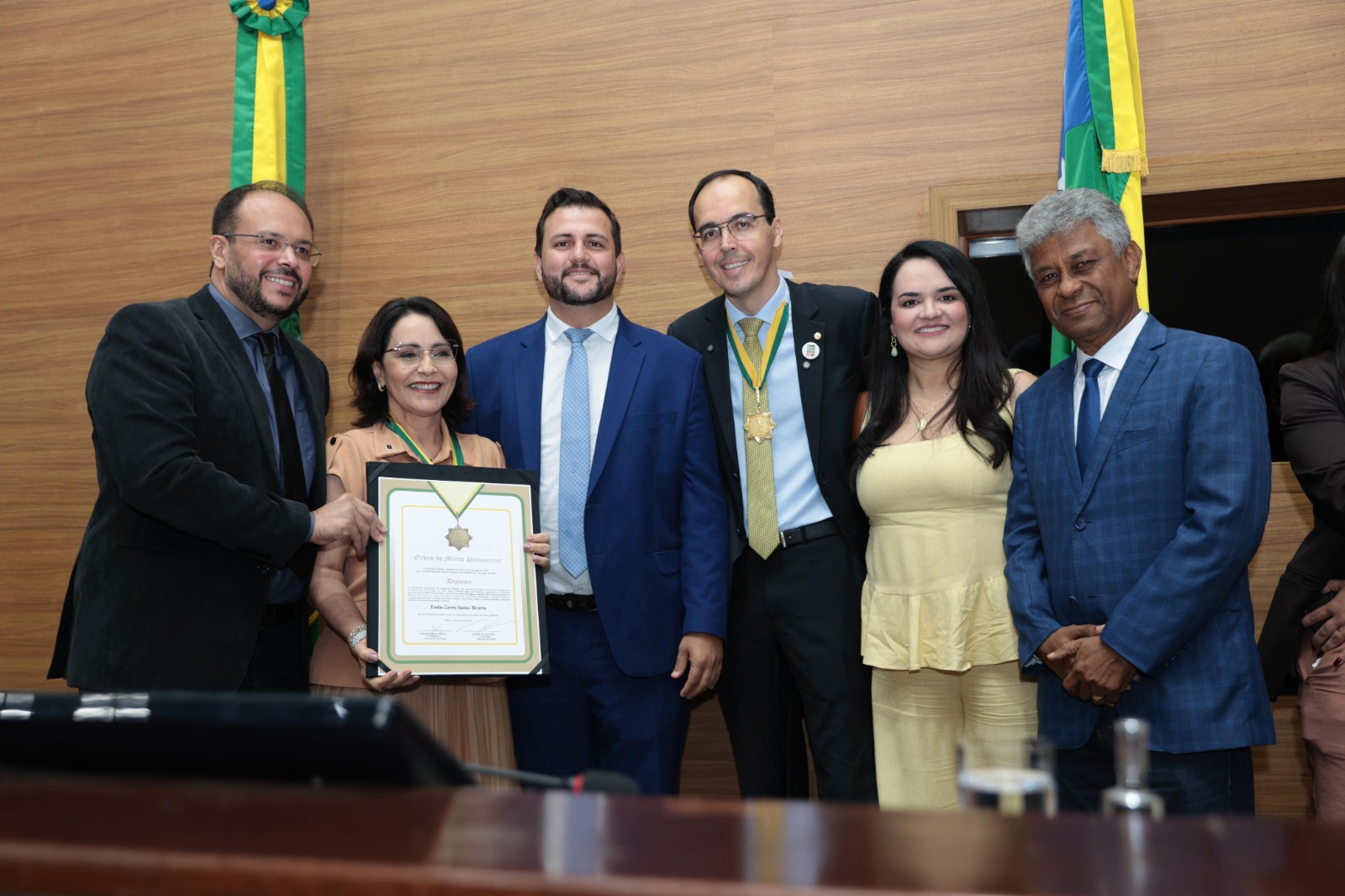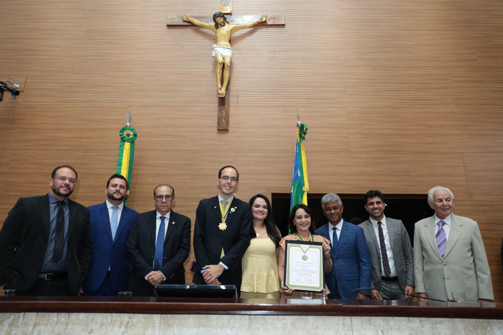 A mesa de honra foi composta pelo deputado Georgeo Passos; pelo deputado Marcos Oliveira (PL); pela homenageada; pelo deputado federal Thiago de Joaldo (PP); pelo secretário executivo da Articulação Política com os Municípios, Venâncio Fonseca, representando o governador Fábio Mitidieri; pelo vereador Pastor Diego (PP), representando a Câmara Municipal de Aracaju; e pelo fundador do Grupo Tiradentes e reitor da Universidade Tiradentes (Unit), professor Jouberto Uchôa.