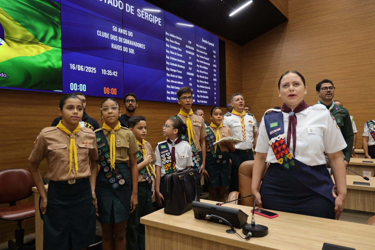 Foi realizada, nesta segunda-feira (16), na Assembleia Legislativa do Estado de Sergipe (Alese), a Sessão Especial em homenagem aos 50 anos do Clube de Desbravadores Raios do Sol. A propositura, de autoria do deputado Georgeo Passos (Cidadania), visou celebrar a história de fé, serviço e impacto social, tornando-se uma das mais tradicionais organizações de formação juvenil do estado.