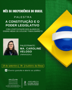 • 18 de setembro: “A Constituição e o Legislativo” – Caroline dos Passos Veloso