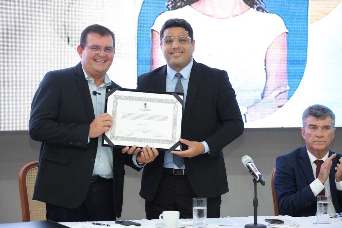 Diploma entregue ao prefeito de Propriá pelo presidente da Alese