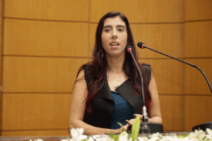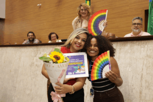 A professora de química Laís Menezes, homenageada pela atuação inovadora na rede pública estadual e pela criação do projeto EcoGirls, emocionou o plenário ao relatar os desafios de ser uma mulher negra, da área de exatas, atuando em uma cidade do interior. Seu discurso foi marcado por firmeza, sensibilidade e orgulho de sua trajetória.