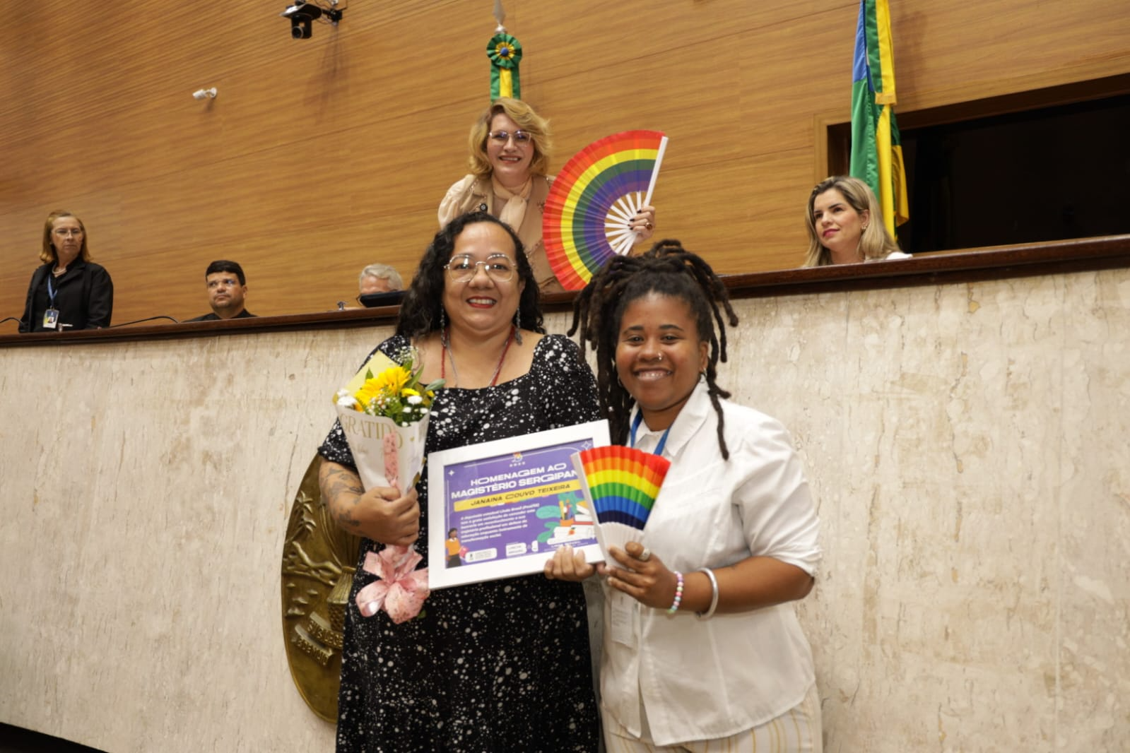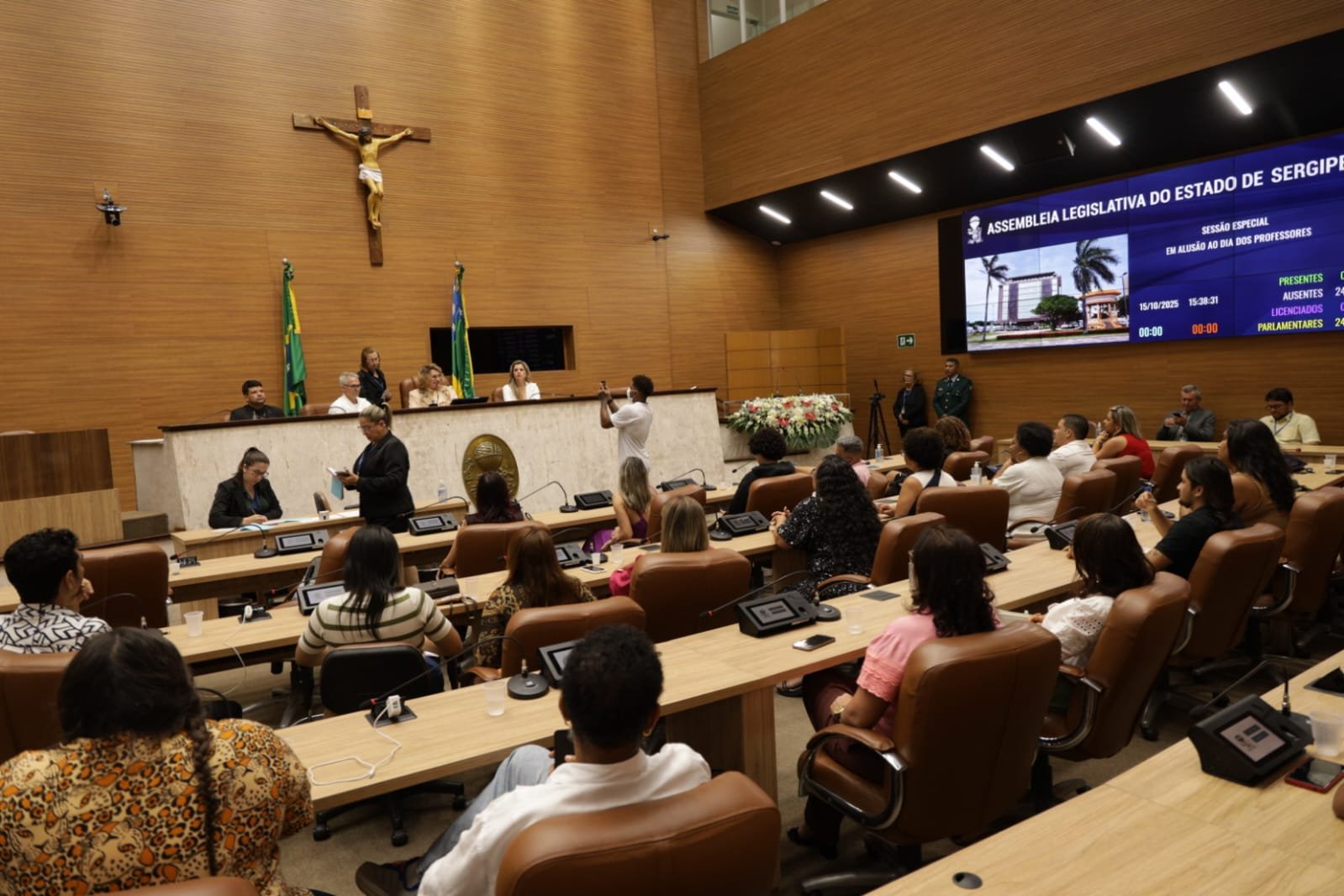 Em reconhecimento ao papel essencial dos profissionais da educação na construção de uma sociedade mais justa, democrática e igualitária, a Assembleia Legislativa de Sergipe (Alese) realizou, nesta quarta-feira (15), uma Sessão Especial em homenagem ao Dia dos Professores. A iniciativa, de autoria da deputada estadual Linda Brasil (PSOL), teve como tema central “Lutas e Valorização”, reunindo educadores, representantes sindicais, movimentos sociais, gestores, parlamentares e membros da sociedade civil no Plenário da Casa Legislativa.