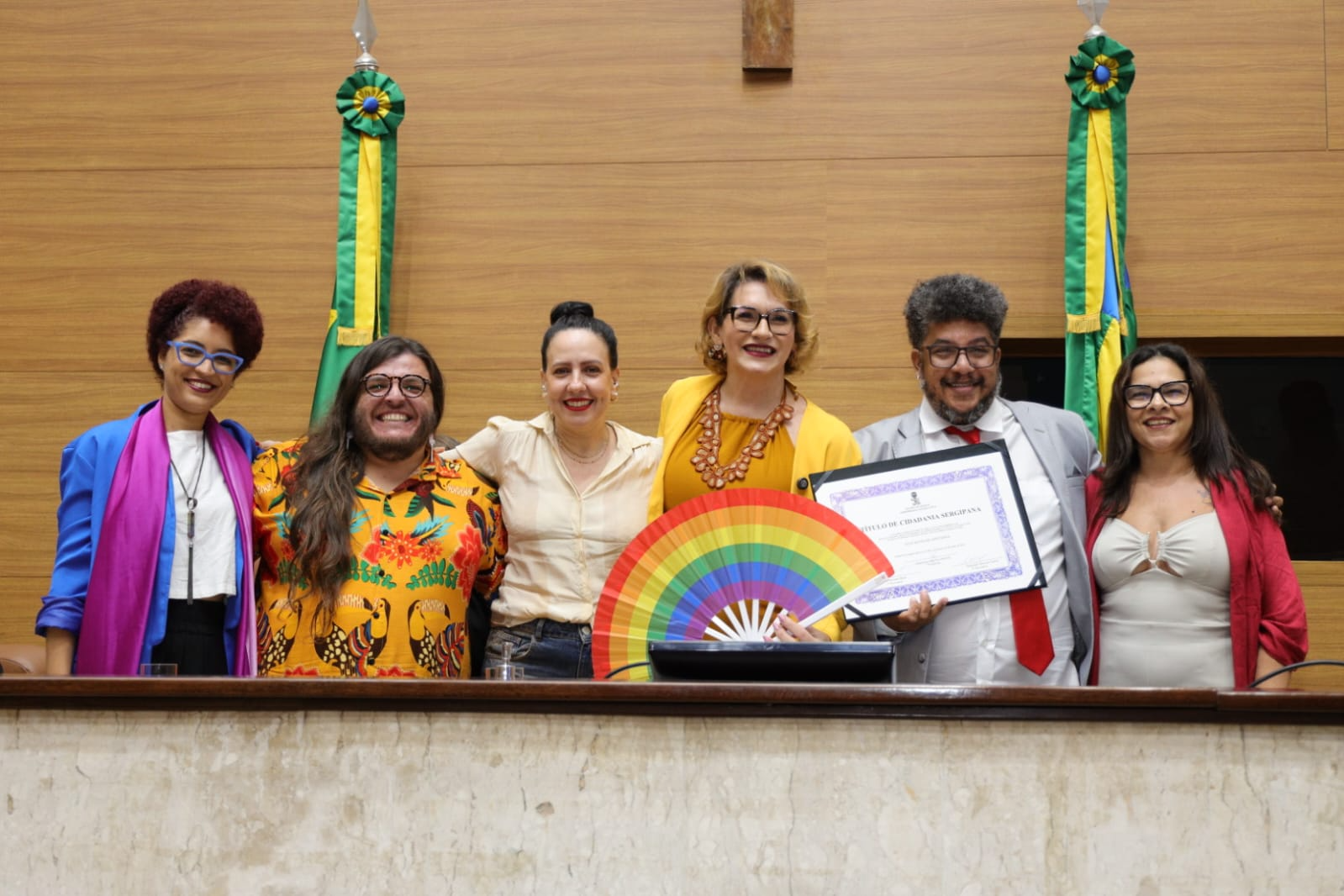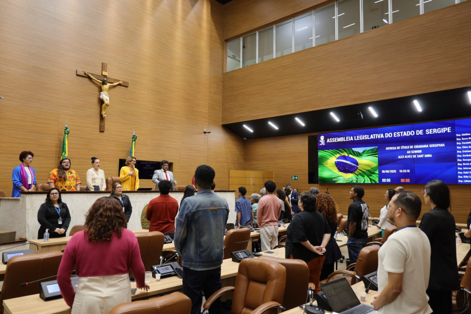 A Assembleia Legislativa de Sergipe (Alese) realizou, nesta segunda-feira, 30, a Sessão Especial de entrega do Título de Cidadania Sergipana ao cantor, compositor e produtor musical Alex Sant’Anna. A solenidade, proposta pela deputada estadual Linda Brasil (Psol), aconteceu às 16h no plenário da Casa e foi transmitida ao vivo pela TV Alese (canal aberto 5.2) e pelo YouTube.