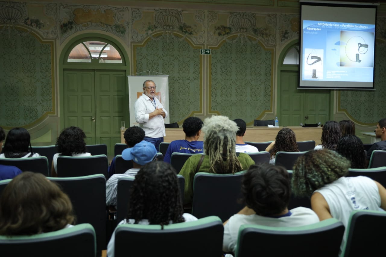 Foi realizado na manhã desta quinta-feira (26), no auditório da Escola do Legislativo João de Seixas Dória, mais uma edição Projeto Quintas Negras, com a palestra do escultor sergipano Antônio Cruz. Autodidata, ele desenha e pinta desde criança; participou de várias exposições coletivas e fez diversas individuais. Na ocasião, ele falou para um público formado por estudantes e professores do Centro de Excelência D.Luciano José Cabral Duarte, artistas, músicos, representantes do movimento negro e servidores da Elese.