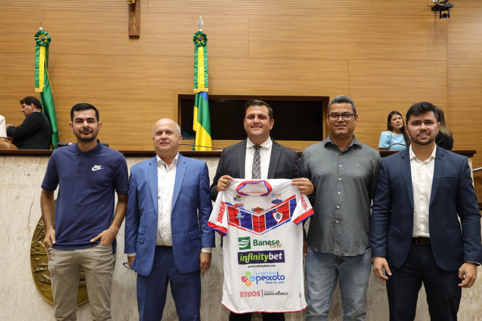 “Descendo a serra. Jogando uma bola, com calma e paixão. Três cores na faixa, alegria do povo. É o seu campeão”. Ao som do hino da Associação Olímpica de Itabaiana, foi iniciada a Sessão Especial realizada pelo deputado Marcos Oliveira (PL), na tarde desta terça-feira (5), no plenário da Assembleia Legislativa de Sergipe (Alese) como forma de homenagear o time pelo acesso à Série C do Campeonato Brasileiro de Futebol, mas também de parabenizar os demais clubes sergipanos.