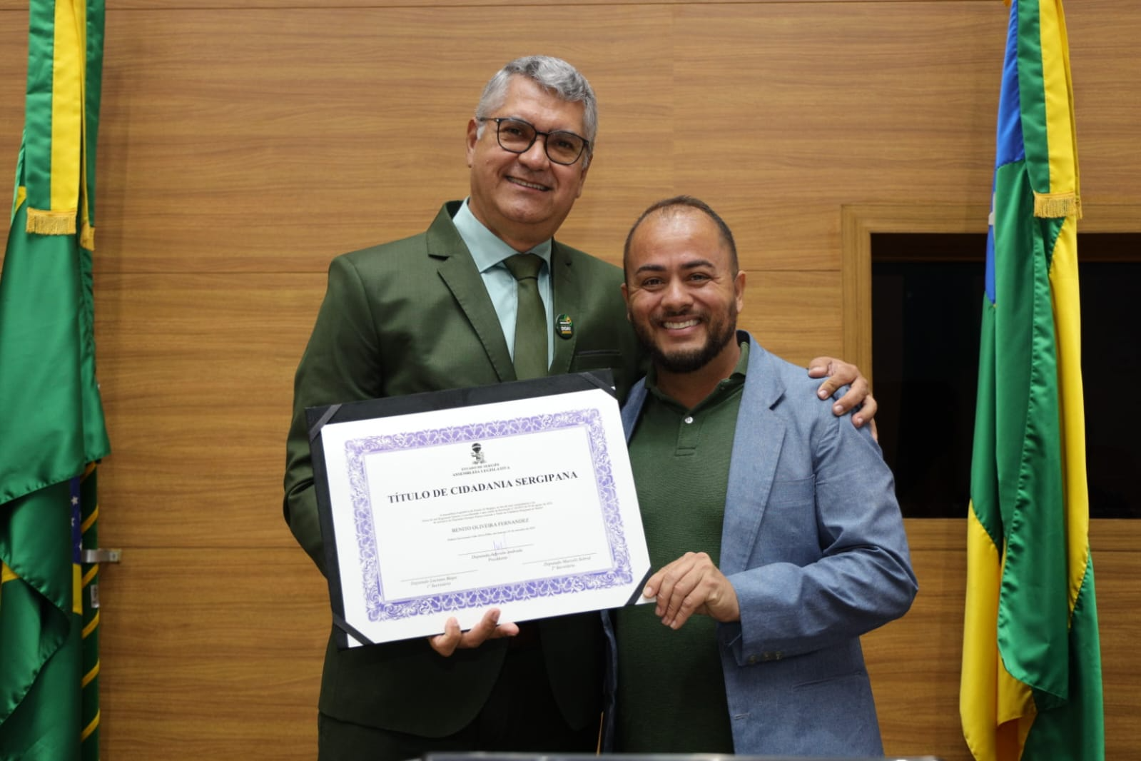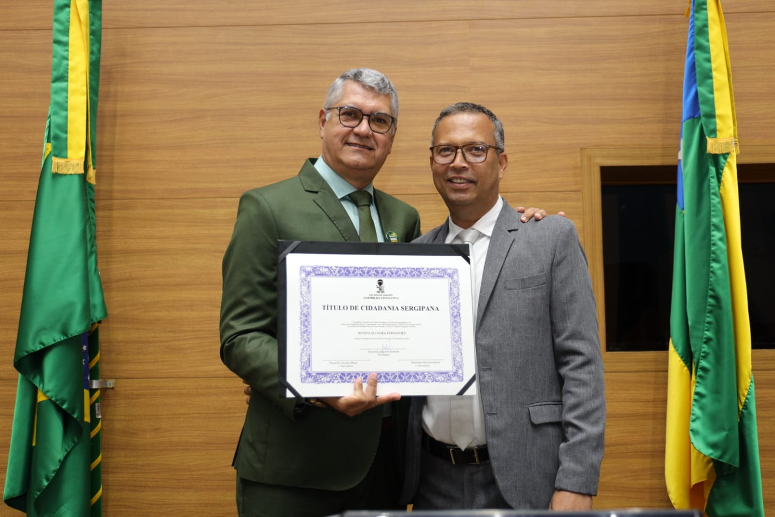 Durante a cerimônia, o deputado Georgeo Passos destacou que a concessão do título simboliza o reconhecimento do povo sergipano ao compromisso e ao trabalho desenvolvido por Benito.