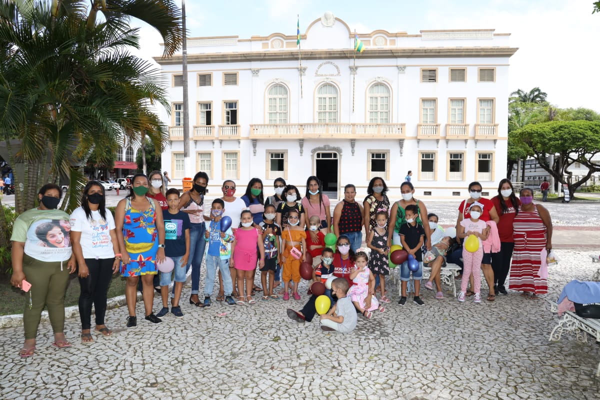 O sorriso estampado no rosto de cada criança foi garantido pelo espetáculo que narra a história do casal ‘Mateus e Catirina’, que tem inspiração no Bumba Meu Boi.