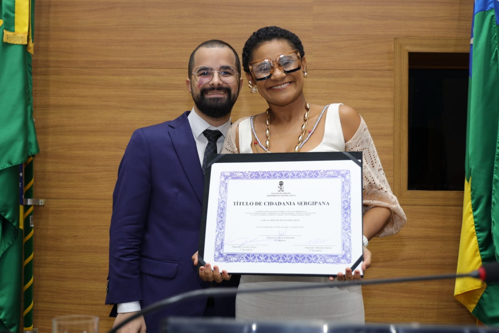 “Esse título que Carla recebe hoje é a materialização de algo que sempre esteve claro para todos que a conhecem: ela é sergipana de coração, de alma e de ação. Quem convive com Carla sabe o quanto ela ama essa terra e como se dedica incansavelmente à defesa dos direitos humanos, especialmente das mulheres negras. É uma mulher que não apenas ocupa espaços, ela os transforma, ressignifica e abre caminhos para outras entrarem. A trajetória dela é feita de coragem e coerência. Ela nunca separa a atuação profissional da missão de vida. Como defensora pública, como militante, como mulher negra, ela entende a importância do lugar que ocupa. Esse reconhecimento fortalece ainda mais sua caminhada. Como companheiro, me sinto imensamente orgulhoso. Como advogado, me inspiro nela. E como sergipano, fico feliz em ver que o Estado reconhece uma de suas maiores defensoras.”
