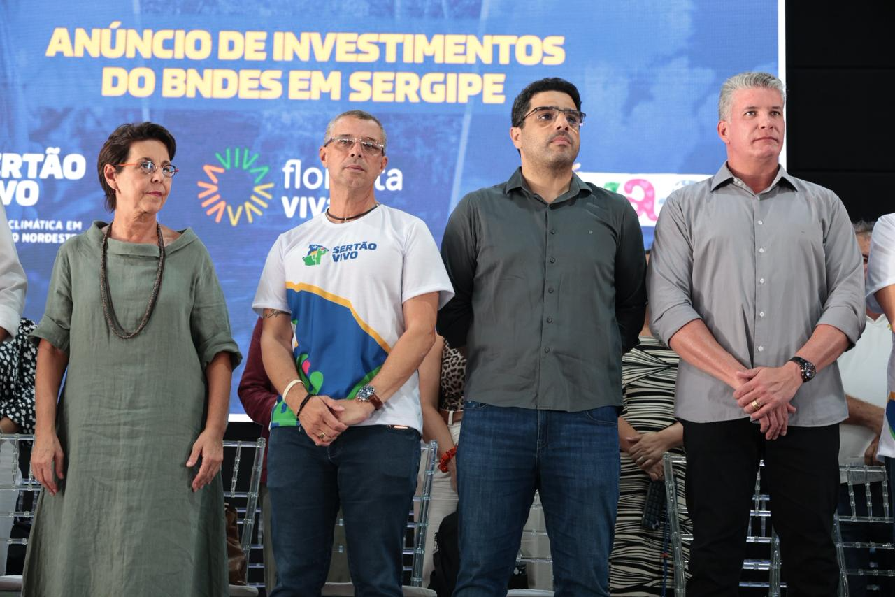 “Primeiro, quero agradecer ao BNDES, na pessoa da nossa diretora Tereza Campello, pela parceria e confiança no nosso estado. Hoje estamos falando de três áreas fundamentais: cultura, geração de emprego e renda, combate à fome e também meio ambiente. Quando somamos tudo isso, são mais de R$ 400 milhões investidos em Sergipe, recursos que vão transformar a realidade em setores essenciais da nossa economia. Na área do campo, por exemplo, são mais de R$ 150 milhões destinados ao Sertão Vivo, voltados para pequenos agricultores familiares. Isso significa investir diretamente no homem e na mulher do campo, dando condições para que produzam, gerem sua própria renda e sustentem suas famílias. Não se trata apenas de um programa social, mas de uma política estruturante, que fortalece a economia de forma duradoura. Muitas vezes, o que o produtor precisa é de apoio, de uma mão amiga, e é isso que estamos fazendo, em parceria com o Governo Federal e o BNDES”, afirmou.