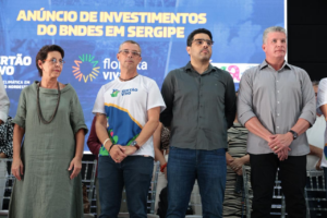 No eixo ambiental, foi detalhado o programa Floresta Viva, que, conforme informado, poderá mobilizar até R$ 100 milhões para projetos de restauração ecológica nos biomas Caatinga e Mata Atlântica, incluindo áreas de manguezais e restingas. O modelo prevê cofinanciamento entre o BNDES e o Governo do Estado, por meio da Desenvolve-SE, com aportes de até R$ 50 milhões de cada parte. De acordo com as informações apresentadas, os projetos priorizam o uso de espécies nativas e sistemas agroflorestais, com ações voltadas à recuperação de áreas degradadas, proteção de nascentes e melhoria das condições do solo. A proposta inclui ainda medidas relacionadas à atividade pesqueira e ao extrativismo em regiões costeiras.