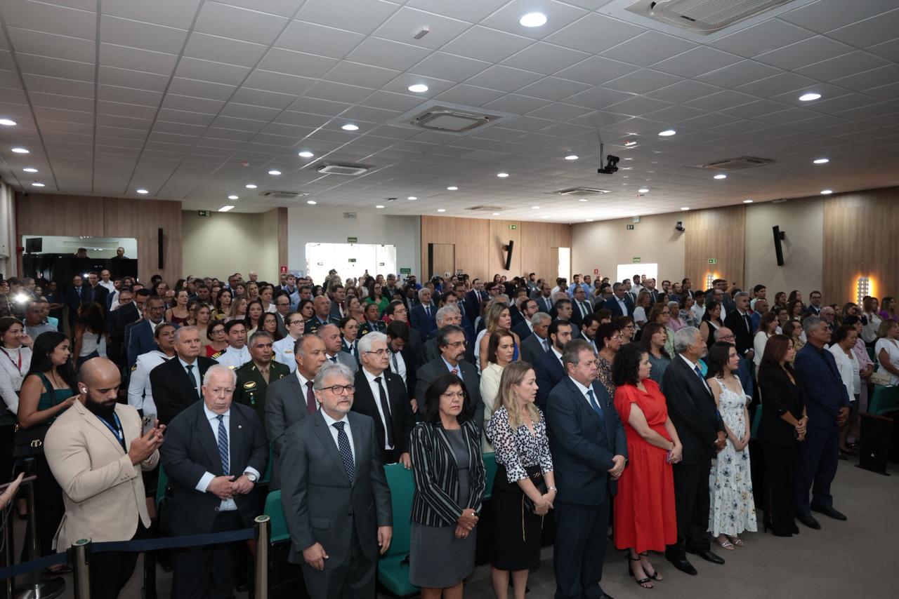 Durante a solenidade, o presidente da Alese destacou a importância da harmonia entre os Poderes e ressaltou o papel do TRE na garantia da democracia e da lisura do processo eleitoral.