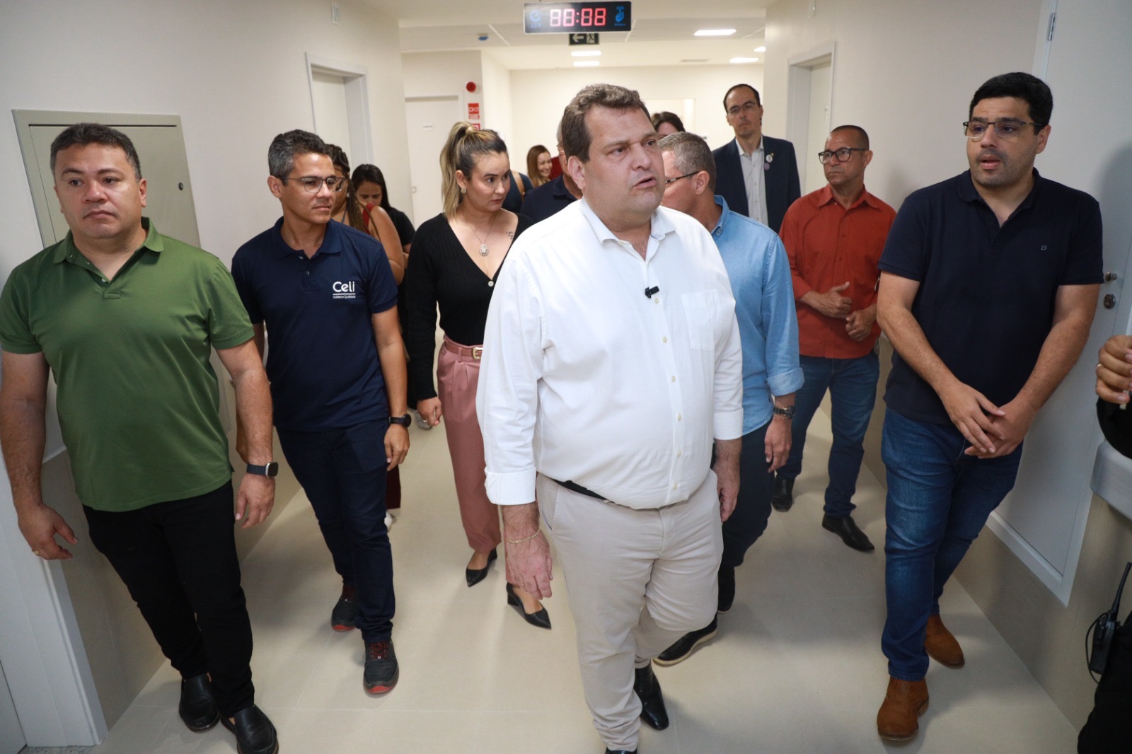 O governador Fábio Mitidieri (PSD) ressaltou o avanço das obras do Hospital do Câncer de Sergipe e o compromisso do Governo do Estado em entregar uma estrutura moderna e completa à população. “Hoje tivemos uma reunião solicitada pela Assembleia Legislativa, em parceria com o secretário Cláudio, e fiz questão de participar desse momento. O Hospital do Câncer é debatido em Sergipe desde 2014, e quando chegamos ao governo, apenas 9% da obra estava concluída. Agora, vamos entregá-lo em dezembro com 100% finalizado. É um sonho, principalmente para quem precisa de tratamento contra o câncer. Aqui teremos uma estrutura maravilhosa, que vai garantir muito mais conforto e dignidade para essas pessoas. Em dezembro, inauguramos a primeira fase com os atendimentos ambulatoriais e quimioterápicos; em fevereiro, o bunker com o acelerador linear; e, a partir de março, concluiremos o processo de Parceria Público-Privada (PPP) para a gestão do hospital. Esse modelo, que tem dado certo em todo o país, vai trazer para Sergipe um equipamento de primeiro mundo. Estamos falando de um investimento de quase R$ 300 milhões, sendo R$ 170 milhões do Estado e mais R$ 120 milhões da empresa parceira em equipamentos. São 220 leitos, com 10 UTIs adulto e 10 pediátricas. É um hospital de excelência, fruto de um grande esforço coletivo para transformar a saúde pública de Sergipe”, afirmou.