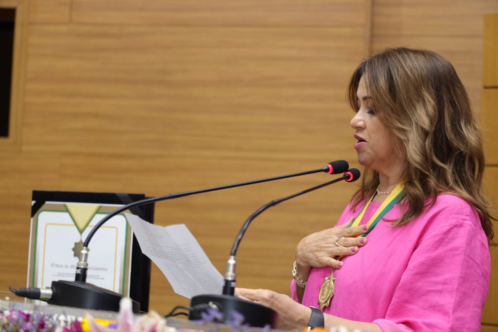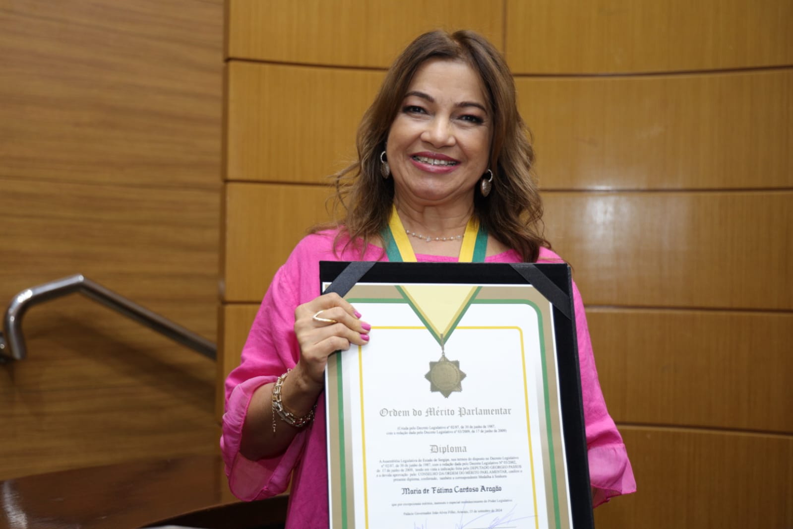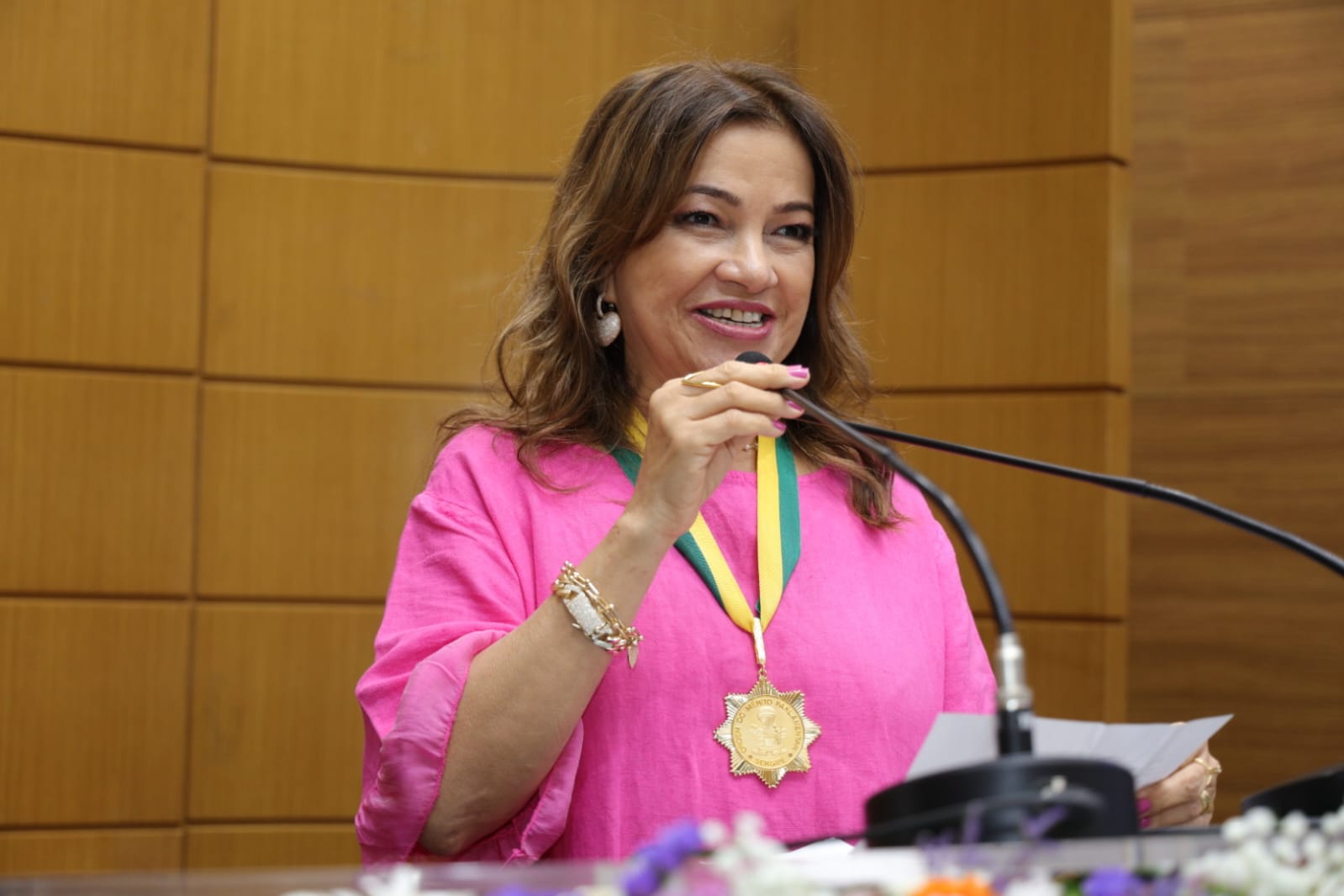 “Eu me sinto muito feliz e agradeço à Deus, a minha família que me dá apoio e ao deputado Georgeo Passos, por hoje no Dia Internacional do Farmacêutico, estar recebendo essa condecoração me deixa muito honrada e grata, tanto a essa casa, como também aos colegas farmacêuticos de Sergipe e do Brasil, que eu represento como conselheira federal de farmácia. Eu me sinto muito lisongeada, humildemente falando por uma trajetória de servir a várias comunidades e por continuar lutando pelas causas da categoria. Agradeço de coração ao deputado Georgeo Passos e dizer que estou feliz com esse reconhecimento e que continuarei lutando e fazendo o meu melhor como profissional farmacêutica. Quero compartilhar essa honraria com todos os meus colegas dessa profissão que tanto amo, que contribuem com ética, zelo e responsabilidade, o papel crucial na promoção da saúde e bem estar da população. Somos figuras essenciais no combate à auto-medicação e do uso consciente de medicamentos”, enfatiza.