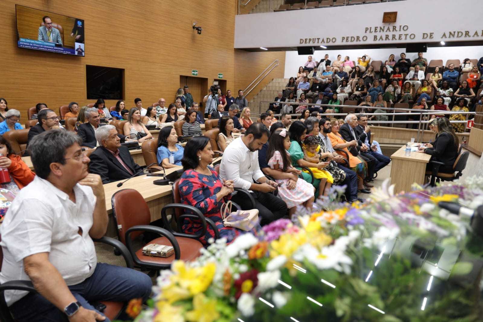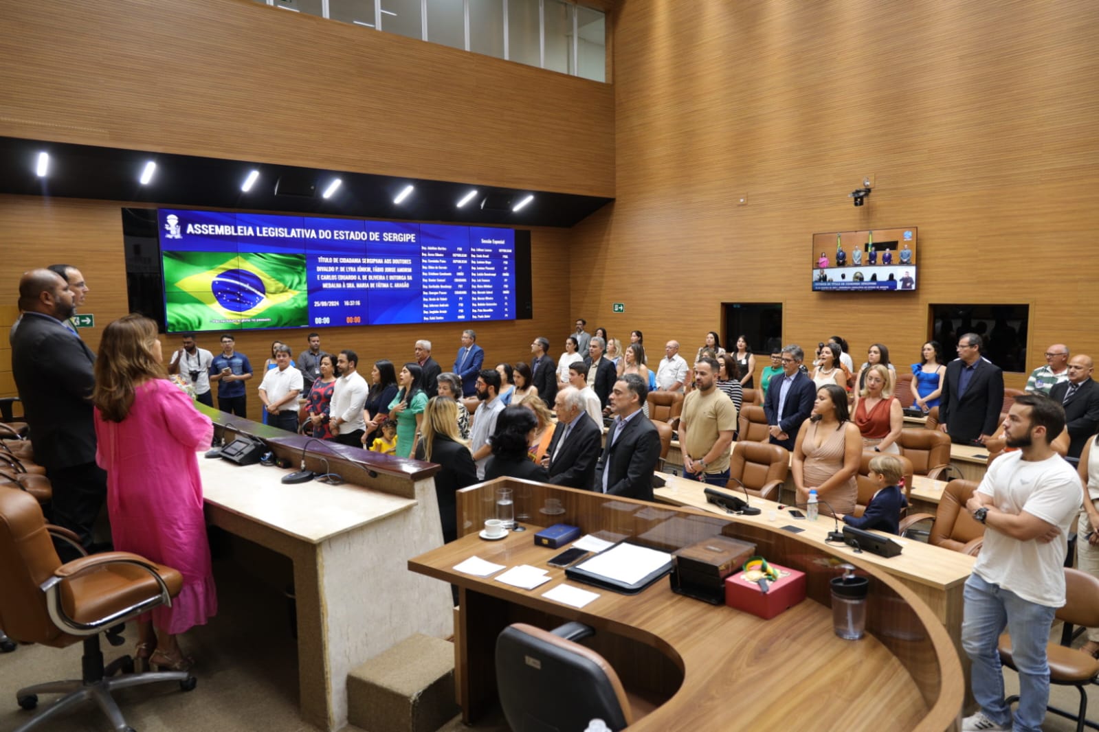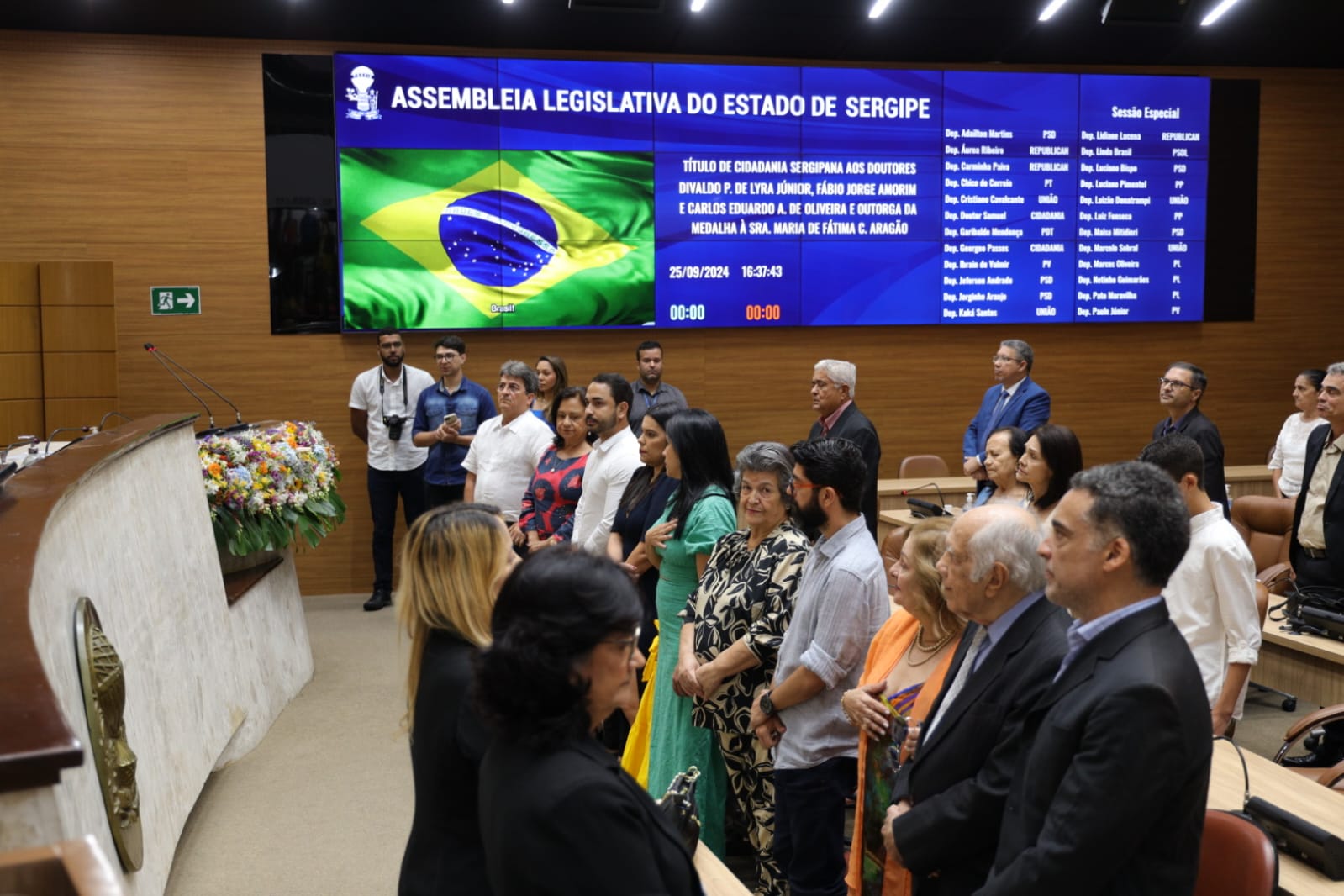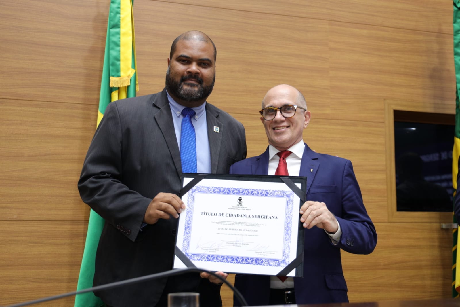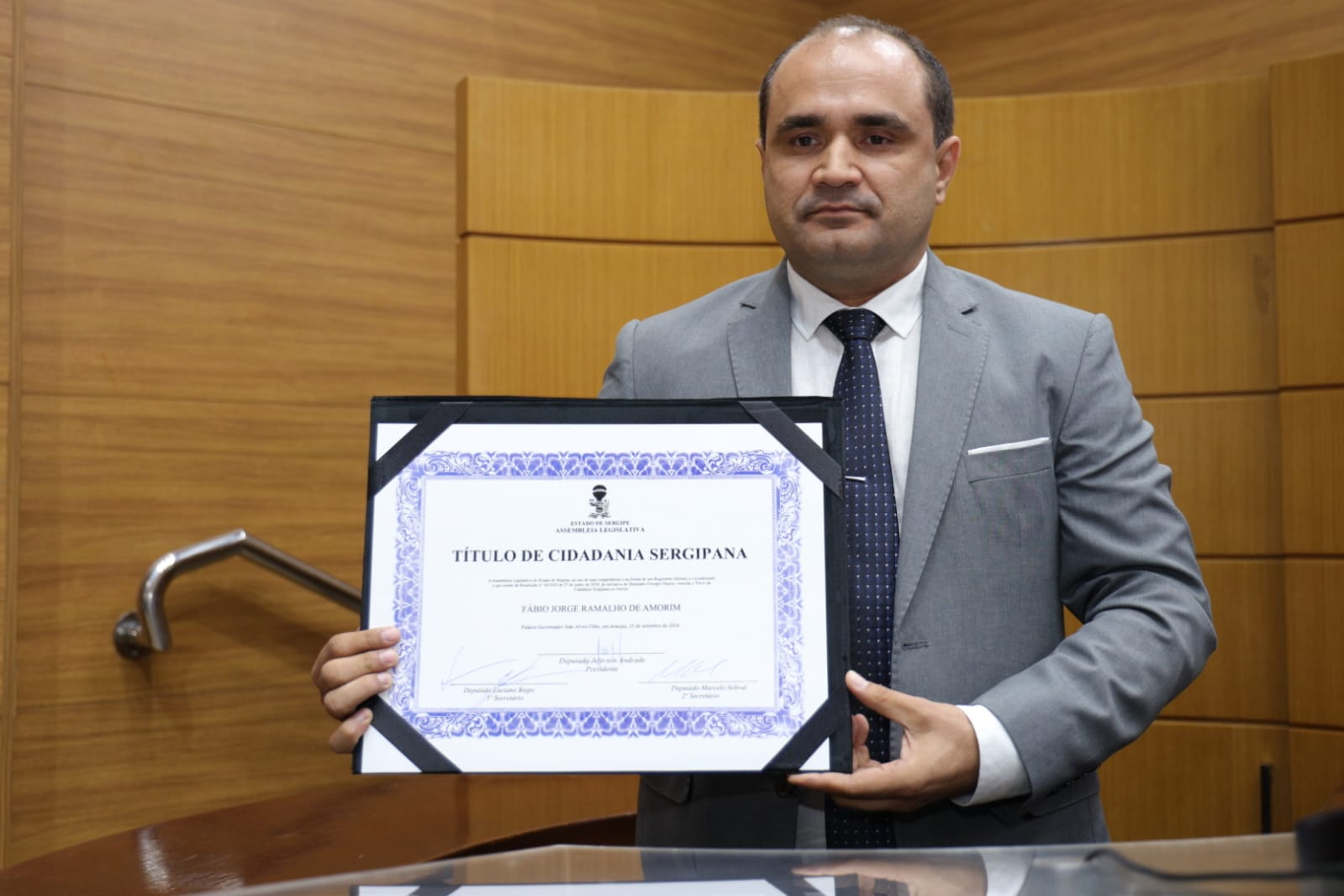 “Com certeza é uma alegria e uma honra receber o Título de Cidadão Sergipano; agradeço ao deputado Georegeo Passos por oferecer essa honraria a minha pessoa. Estou muito feliz em ter muitos familiares que vieram de Arapiraca (AL) e amigos prestigiando esse momento tão feliz na minha vida”, afirma Fábio Jorge.