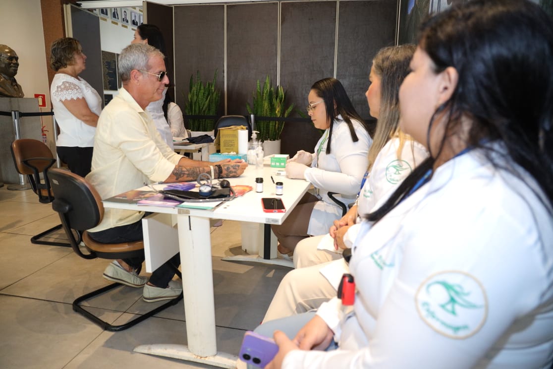 Larisse Coelho informou quais os serviços estão sendo oferecidos durante a ação realizada na manhã desta segunda-feira na Assembleia Legislativa de Sergipe. “Estamos entregando materiais educativos, verificando pressão arterial e glicemia; orientando os servidores e visitantes nos casos de alterações, quanto ao que deve ser feito; e nos casos que estiver tudo normal, estimulando que continuem mantendo os hábitos saudáveis”, ressalta.