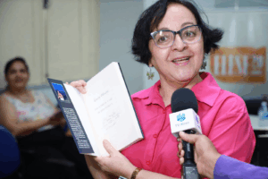 Licenciada em História pela Universidade Federal de Sergipe (UFS), pós-graduada em Psicopedagogia Institucional pela Faculdade Pio Décimo e especialista em Psicologia e Psicoterapia Transpessoal pelo Instituto Athenas, Lúcia também ocupa a cadeira de número 5 na Academia Feminina de Letras e Artes de Sergipe (AFLAS). Durante o encontro, a autora compartilhou com o público detalhes sobre a obra e sua experiência como escritora sergipana.