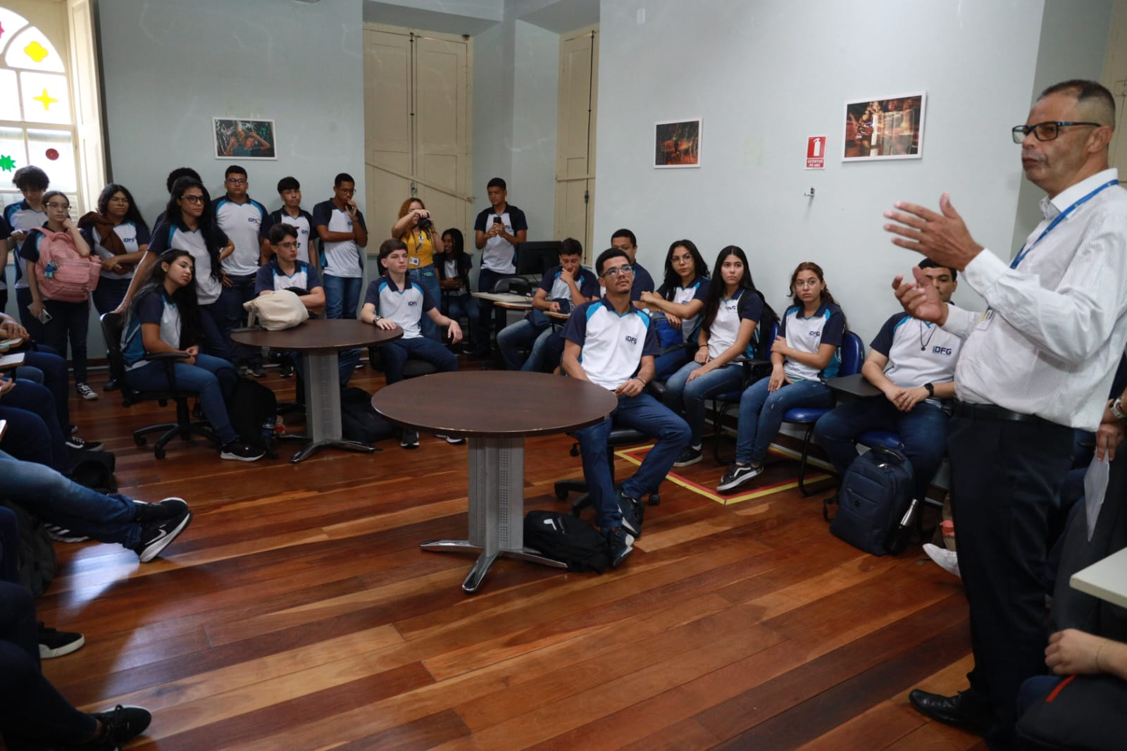 A coordenadora pedagógica do Instituto Dom Fernando Gomes, Mylena Martins, acompanhou a turma durante a visita e destacou o impacto positivo da atividade no processo formativo dos estudantes.
