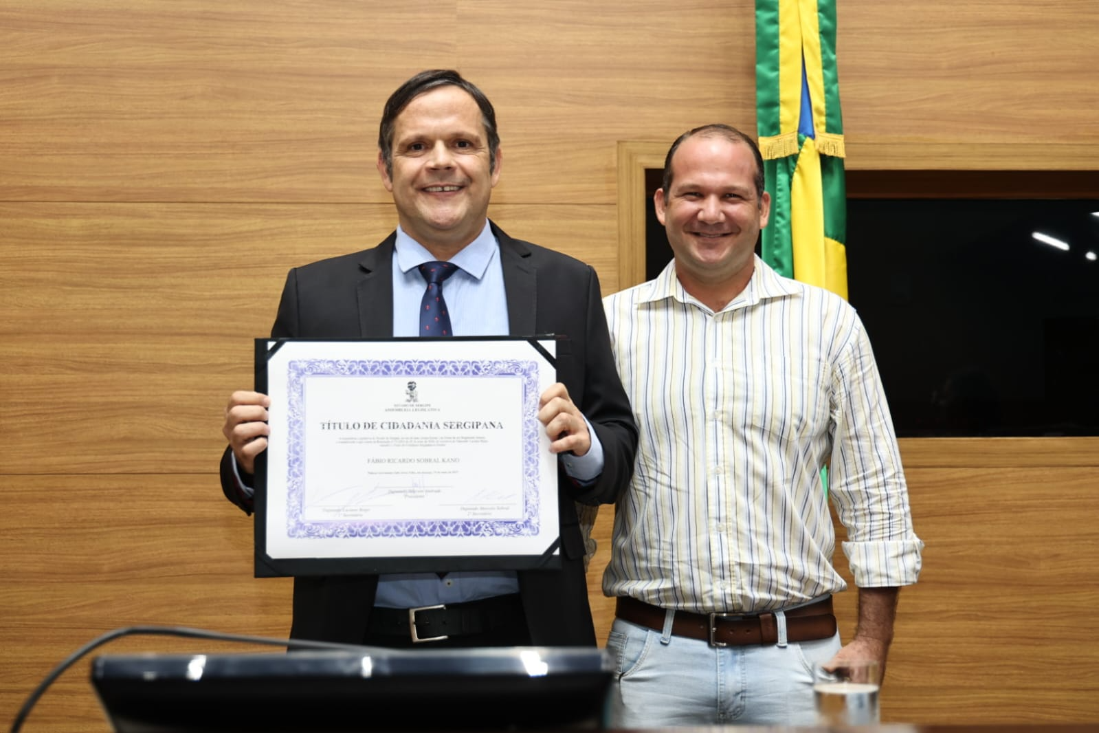 Em Sessão Especial realizada no plenário da Assembleia Legislativa de Sergipe (Alese), nesta segunda-feira (19), o delegado de polícia Fábio Ricardo Sobral Kano foi agraciado com o Título de Cidadania Sergipana.