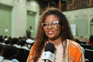“Estar aqui hoje é algo muito especial para mim. Eu acredito que a gente aprende de verdade quando consegue viver aquilo que estuda. E esse momento representa exatamente isso: a possibilidade de vivenciar a cultura, de ouvir um pesquisador que se dedicou a estudar a fundo algo que faz parte da nossa identidade, da nossa história. A escola já vem trabalhando bastante a valorização da nossa cultura, e isso tem feito com que muitos de nós passemos a nos enxergar com mais respeito, com mais orgulho da nossa origem. Mas quando saímos da sala de aula e temos esse tipo de experiência, tudo fica ainda mais claro. A gente sente. A gente se reconhece. A gente entende que a cultura não está só nos livros, ela está na música, na dança, nas histórias contadas pelos nossos avós, nos festejos populares. Participar do “Quintas Negras” é, para mim, um passo importante na construção da minha identidade. É entender que a cultura negra não é apenas parte do passado, ela está viva, pulsa, e precisa ser valorizada todos os dias. Isso tem tudo a ver com o que somos, com a nossa autoestima, com o nosso sangue. E eu espero que mais jovens possam ter essa mesma oportunidade, porque isso muda a forma como a gente se enxerga no mundo.”