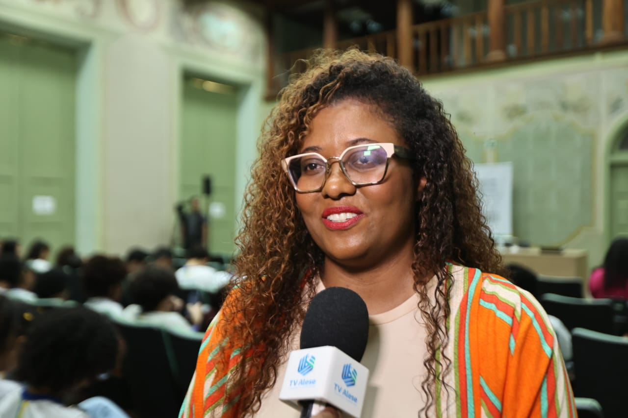 “Esse momento de sair da sala de aula é extremamente importante. Na escola, nós fazemos um trabalho contínuo para despertar o interesse dos alunos pela arte e pela cultura, mas quando eles têm a oportunidade de vivenciar isso em outro espaço, como aqui na Escola do Legislativo, o aprendizado se torna ainda mais profundo e significativo. Hoje, ao ouvirem o professor Hernany falar sobre o forrobodó como uma expressão da identidade negra, nossos alunos entram em contato direto com um conhecimento que vai além da teoria: é um conhecimento vivido, que toca, que provoca, que transforma. Ver o auditório cheio, os estudantes concentrados, atentos, absorvendo cada palavra, nos emociona enquanto educadores. Isso mostra que há sede de saber, que há interesse, que há uma juventude pronta para se reconectar com suas raízes. E para nós, enquanto professoras de arte, isso é motivo de orgulho e também de esperança. A valorização da cultura nordestina e afro-brasileira precisa ocupar cada vez mais os espaços formais de ensino. Quando eventos como o “Quintas Negras” se colocam como aliados da escola, o que temos é uma verdadeira revolução do aprender.”