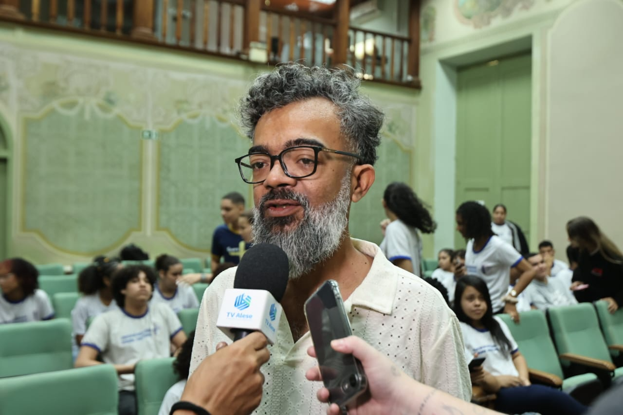“É muito importante estarmos aqui hoje. Agradecemos imensamente o convite da Escola do Legislativo, porque sabemos o quanto esses momentos são valiosos para a formação dos nossos alunos. No cotidiano da sala de aula, fazemos o possível para trabalhar a cultura, a história e as artes de forma interdisciplinar, mas quando saímos do espaço escolar e trazemos os alunos para vivências como essa, tudo ganha uma nova dimensão. O evento de hoje não é apenas uma palestra. É um encontro com as raízes, com a oralidade, com a musicalidade e com a literatura do povo negro. O tema do ‘forrobodó’ nos possibilita enxergar a cultura nordestina com novos olhos. Ao ouvir o professor Hernany, percebemos que o forró, que muitas vezes é encarado apenas como entretenimento, carrega um sentido de resistência, de identidade e de luta. Ver os estudantes atentos, ouvindo, refletindo e fazendo perguntas, é um grande sinal de que estamos no caminho certo, de que essas iniciativas precisam continuar. Eles não apenas aprendem sobre cultura; eles aprendem sobre si mesmos. E isso é fundamental para a construção da autoestima e da cidadania dos nossos jovens.”