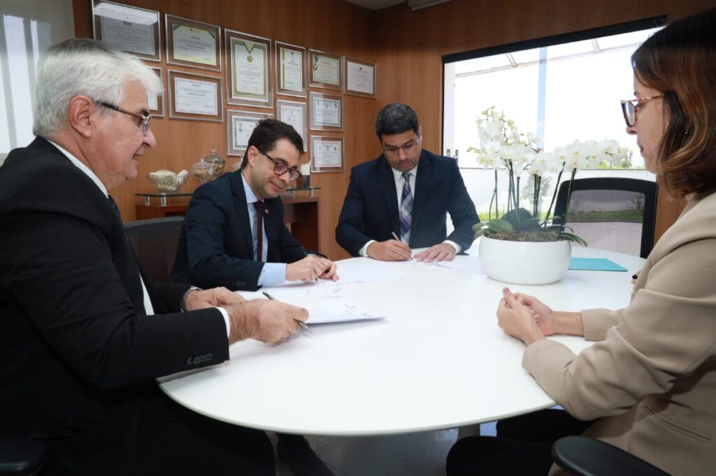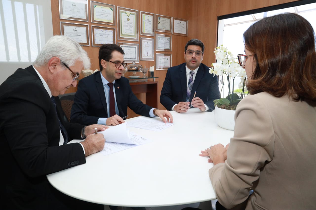 Na manhã desta quarta-feira (15), a Assembleia Legislativa de Sergipe (Alese) e o Ministério Público de Sergipe (MP-SE) firmaram um Termo de Cooperação Técnica para otimizar a divulgação de informações públicas, com foco especial em conteúdos de Saúde. A assinatura ocorreu na Presidência do Poder Legislativo e contou com a participação do presidente da Alese, Jeferson Andrade; do procurador de Justiça Nilzir Soares; do Coordenador-Geral do MP-SE, Carlos Augusto, e da Diretora do CAOp Saúde do MP-SE, Alessandra Pedral. O acordo estabelece uma parceria voltada ao intercâmbio de informações e materiais de comunicação.