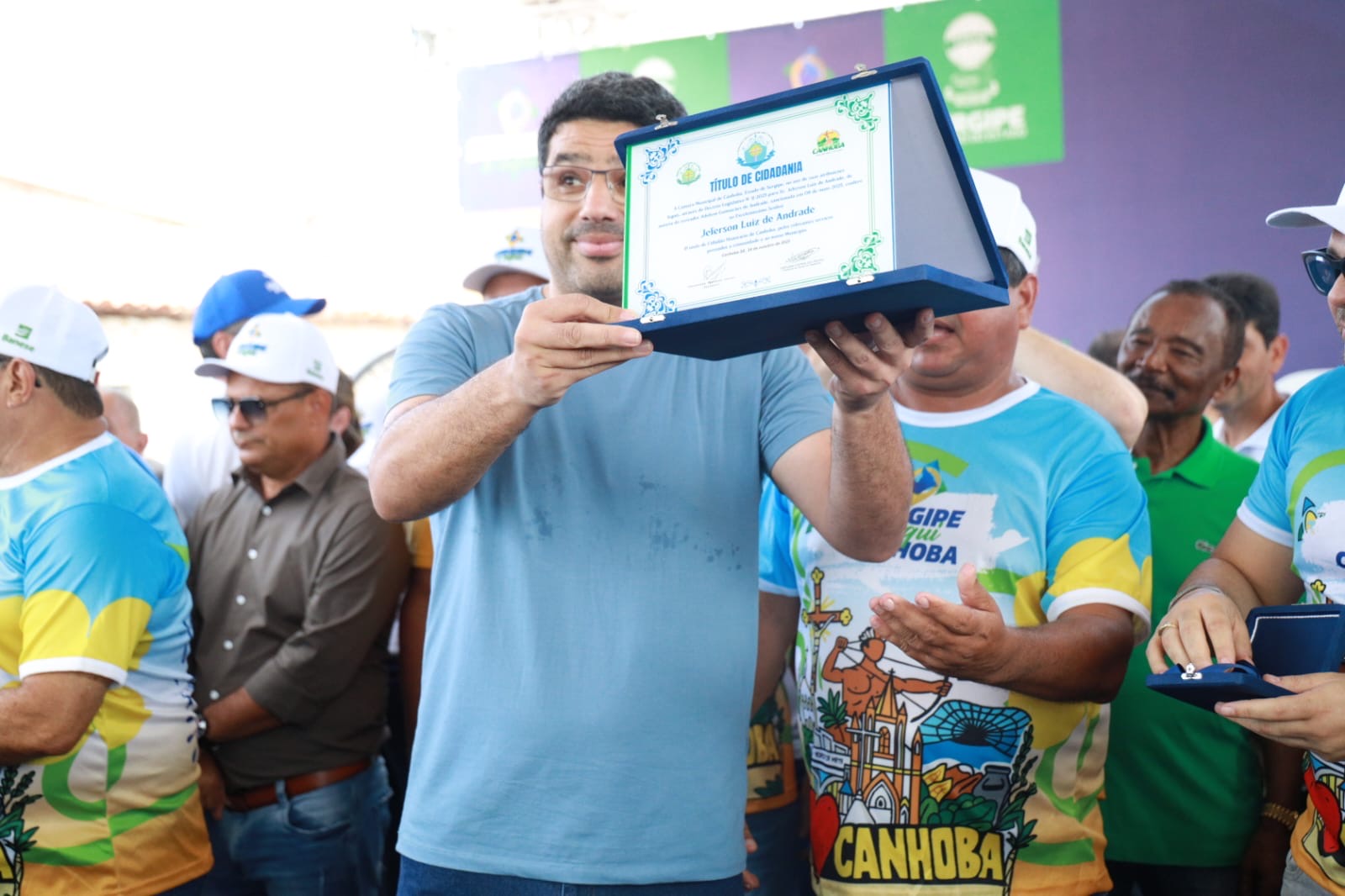 O presidente da Alese, Jeferson Andrade, expressou gratidão ao receber o Título de Cidadão Canhobense das mãos do prefeito Chrystophe Divino. “Receber das mãos do prefeito Chrystophe Divino o Título de Cidadão Canhobense é uma honra que guardarei com profundo carinho e gratidão. Canhoba tem um significado especial para mim e para minha família, é uma terra de gente trabalhadora, de valores firmes e de um sentimento de pertencimento muito forte”, declarou.