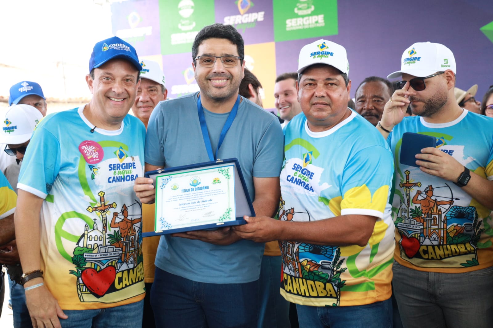 Na manhã desta sexta-feira (24), o presidente da Assembleia Legislativa de Sergipe (Alese), Jeferson Andrade (PSD), recebeu o título de cidadão Canhobense. A entrega do título foi realizada durante a passagem do programa ‘Sergipe é Aqui’ pelo município de Canhoba, e foi de iniciativa da Câmara de Vereadores do município.