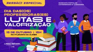 Linda Brasil também convidou a população a participar da Sessão Especial do Dia das Professoras e Professores: Lutas e Valorização, que será realizada nesta quarta-feira, às 15 horas, no plenário da Alese.
