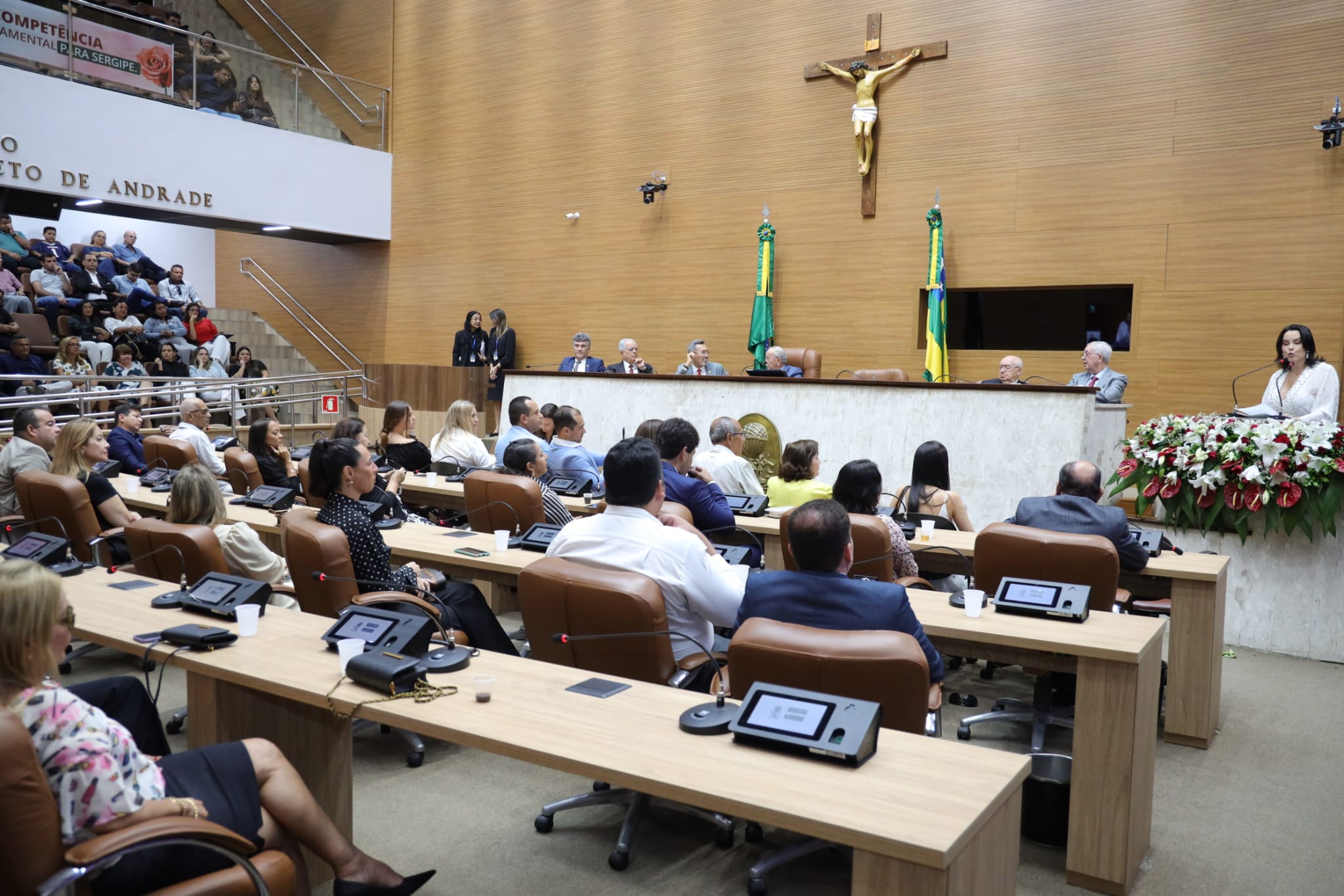 Compuseram a Mesa, além da homenageada e do deputado Luciano Bispo, os desembargadores Edson Ulisses de Melo, Artemio Barreto e Claudio Déda, o presidente da Academia Sergipana de Letras, José Anderson do Nascimento, e o deputado Garibalde Mendoça (PDT). O deputado Luciano Pimentel (PP) fez a saudação à homenageada, em nome da Alese. O Título de Cidadania Sergipana foi entregue durante sessão especial realizada no plenário da Casa.