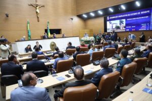 As atividades referentes às sessões parlamentares de 2026, após o recesso constitucional, foram reiniciadas na manhã desta segunda-feira (2), no plenário da Assembleia Legislativa de Sergipe (Alese), com a mensagem do governador Fábio Mitidieri (PSD) e do presidente da Casa, deputado Jeferson Andrade (PSD). Na oportunidade, os deputados estaduais receberam o Relatório das Atividades de 2025, uma publicação elaborada pelo Governo Estadual com as ações desenvolvidas pelas secretarias e órgãos, reafirmando o compromisso da gestão com o cumprimento dos projetos e metas estabelecidas no Plano Estratégico 2023-2026.