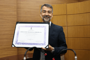 “A emoção é muito grande, porque depois de 25 anos aqui em Sergipe, um Estado que inicialmente eu vim para passar apenas dois anos a trabalho, acabei me apaixonando. Lembro que, quando vi Aracaju pela primeira vez, me encantei com a cidade, com o acolhimento das pessoas, com a tranquilidade e a qualidade de vida. Eu disse à minha família: ‘é aqui que quero ficar’. E aqui fiquei, construí minha vida, formei minha família e criei raízes. Hoje, receber esse título é como se o Estado dissesse: ‘você é um dos nossos’. É o reconhecimento de uma escolha feita com amor e convicção. É uma honra enorme ser considerado oficialmente cidadão sergipano.”