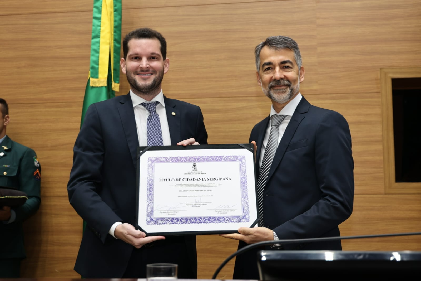 As homenagens foram propostas, respectivamente, pelos deputados estaduais Neto Batalha (PP) e Kaká Santos (União Brasil), em reconhecimento à relevante contribuição de ambos para o desenvolvimento do Estado de Sergipe nas áreas da segurança pública, justiça e saúde.