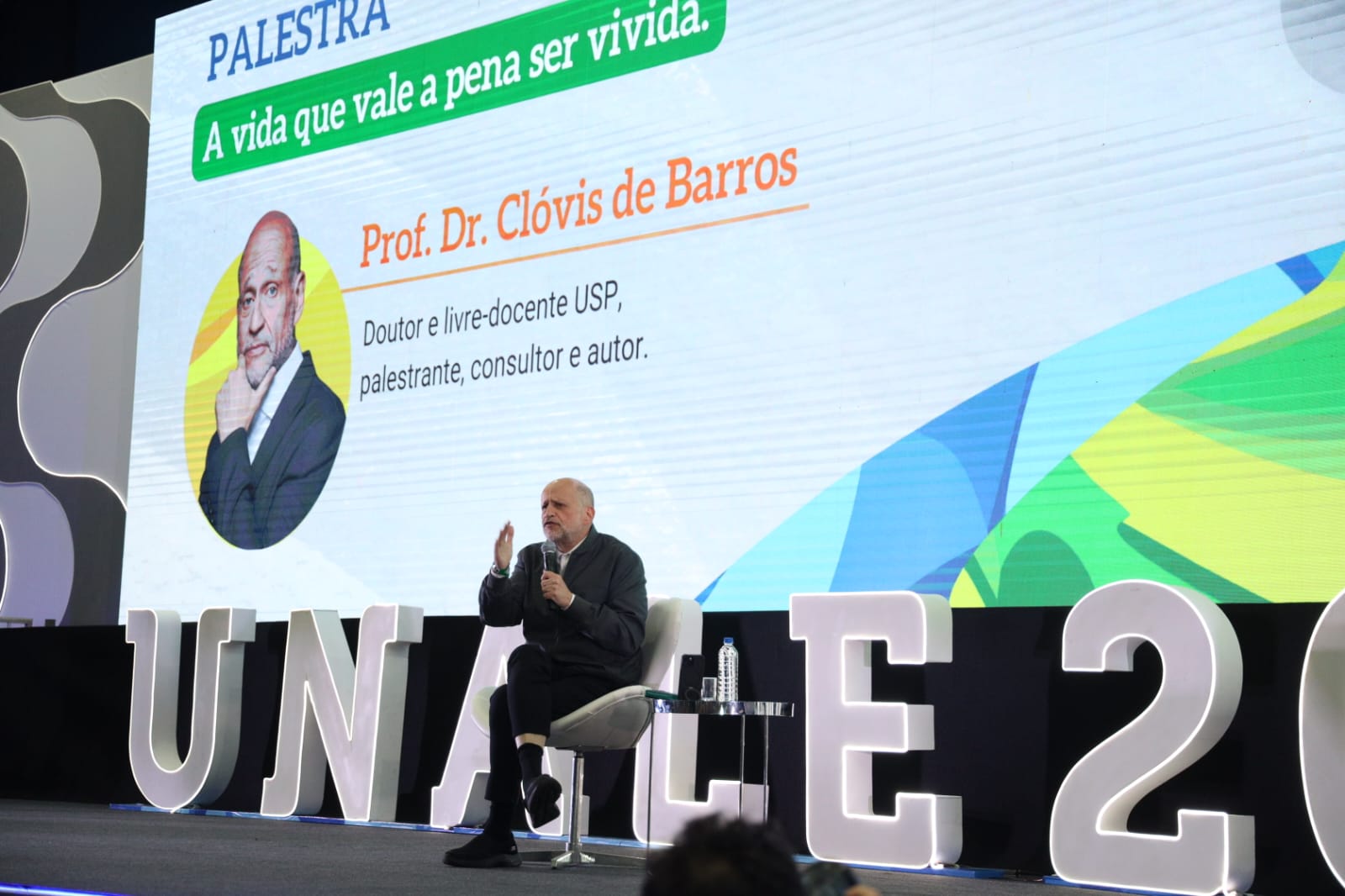 A cerimônia de abertura foi marcada pela palestra magna “A vida que vale a pena ser vivida”, ministrada pelo professor e filósofo Clóvis de Barros Filho, reconhecido por abordar temas como ética, felicidade e filosofia aplicada ao cotidiano.