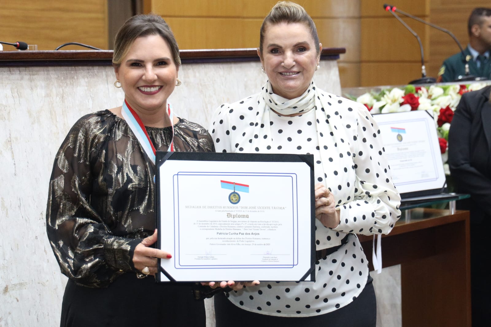 • Juíza Patrícia Cunha Paz dos Anjos, indicada pela deputada Áurea Ribeiro (Republicanos), enfatizou a importância do reconhecimento pelo trabalho humanitário: “É sempre importante ter um reconhecimento como esse quando a gente faz um bom trabalho, principalmente quando se fala em humanização, em um trabalho humanitário. Estou muito honrada de receber essa medalha, convite da deputada Áurea Ribeiro. Esse desenvolvimento desses projetos demonstra que o meu trabalho individual é, na verdade, um trabalho coletivo da sociedade lagartense”.