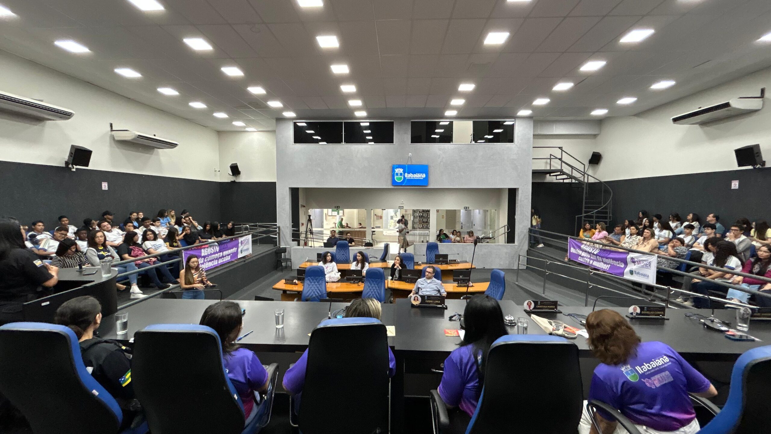 A Procuradoria Especial da Mulher da Assembleia Legislativa de Sergipe (PromuAlese) participou, em Itabaiana, de mais uma ação em alusão ao Agosto Lilás, mês de conscientização pelo fim da violência contra a mulher. A atividade foi realizada no plenário da Câmara Municipal e contou com a palestra “Papo cabeça sobre violência contra a mulher”, em parceria com a Procuradoria da Mulher do município e o Legislativo local.