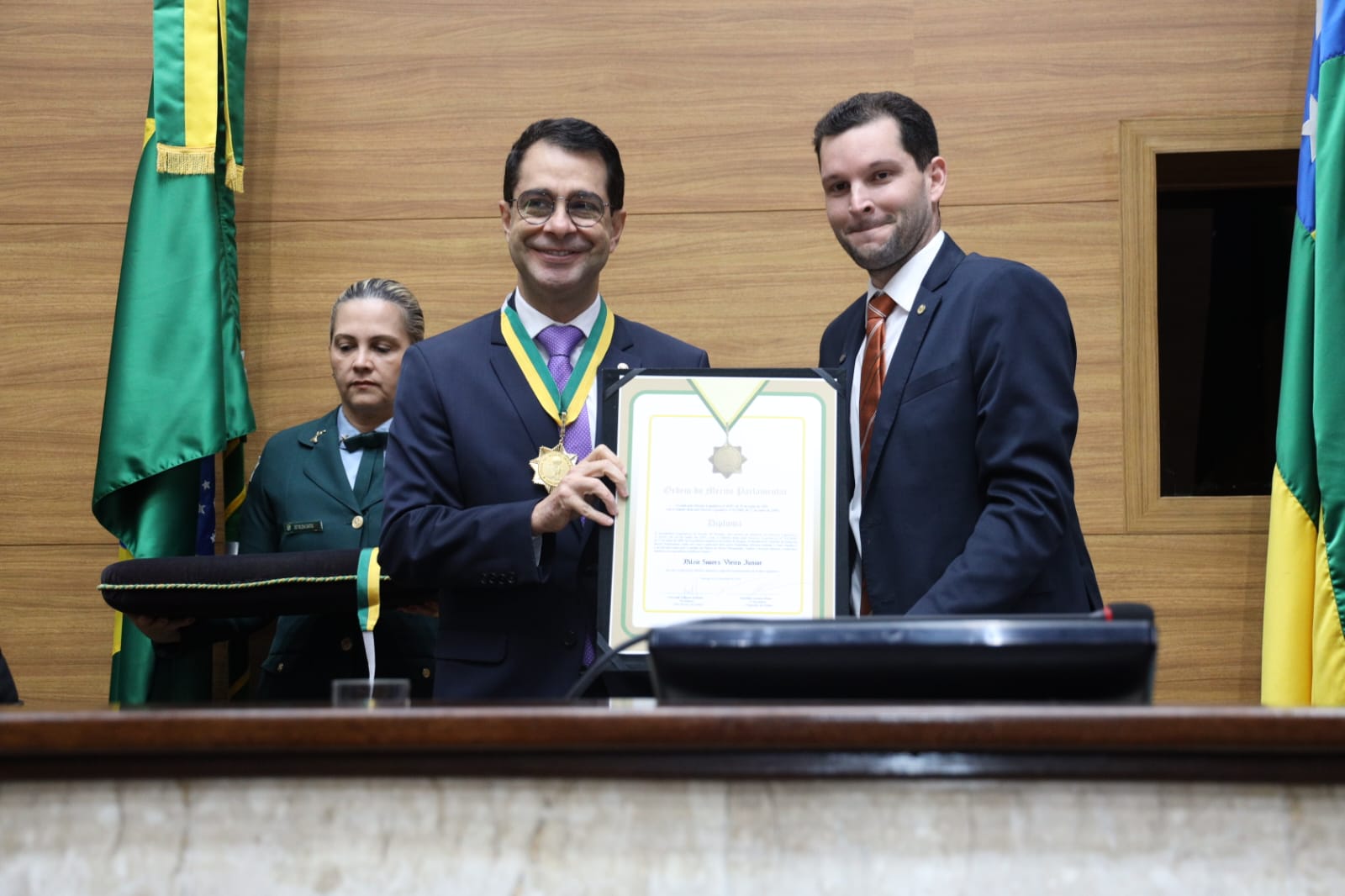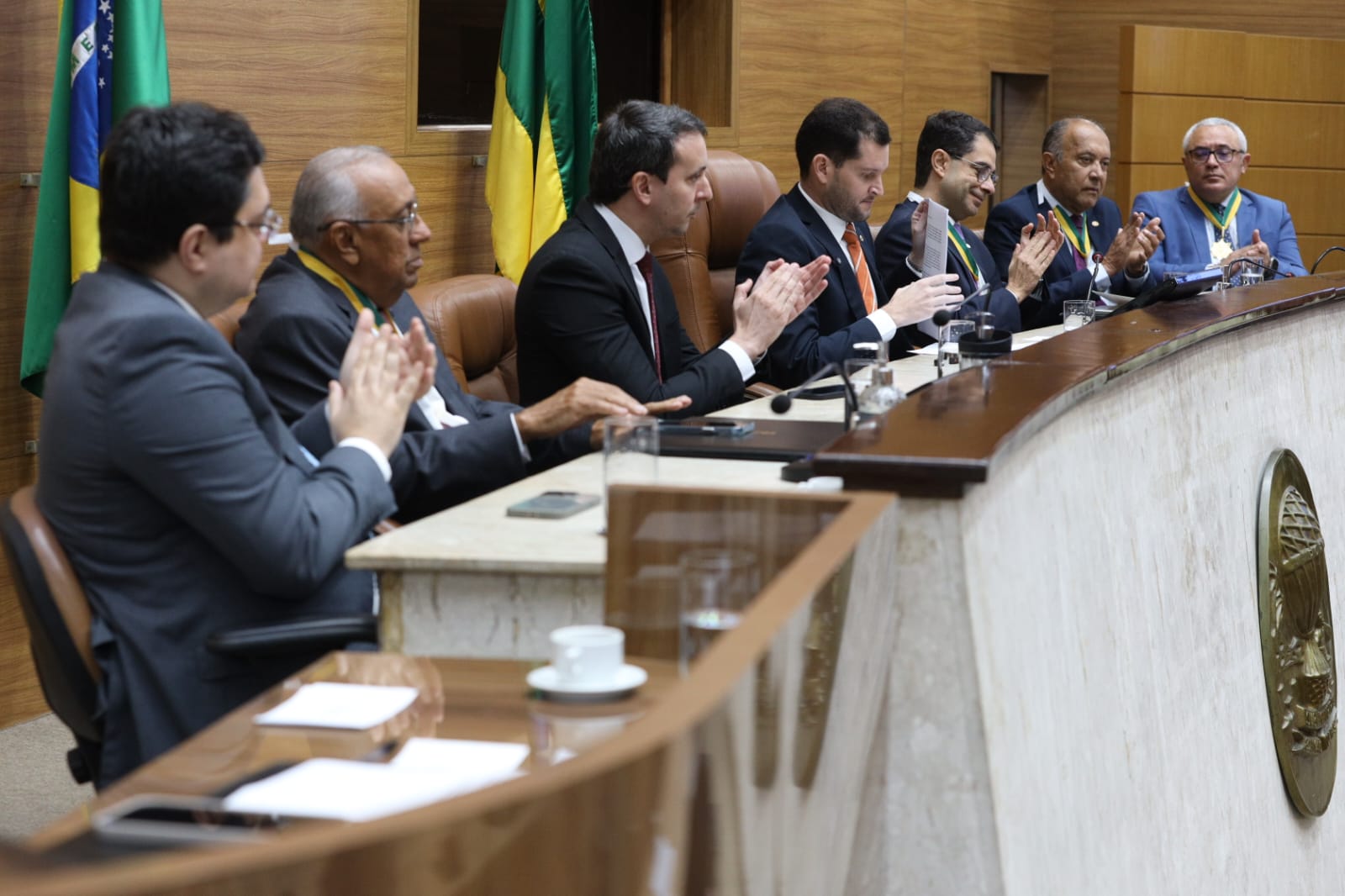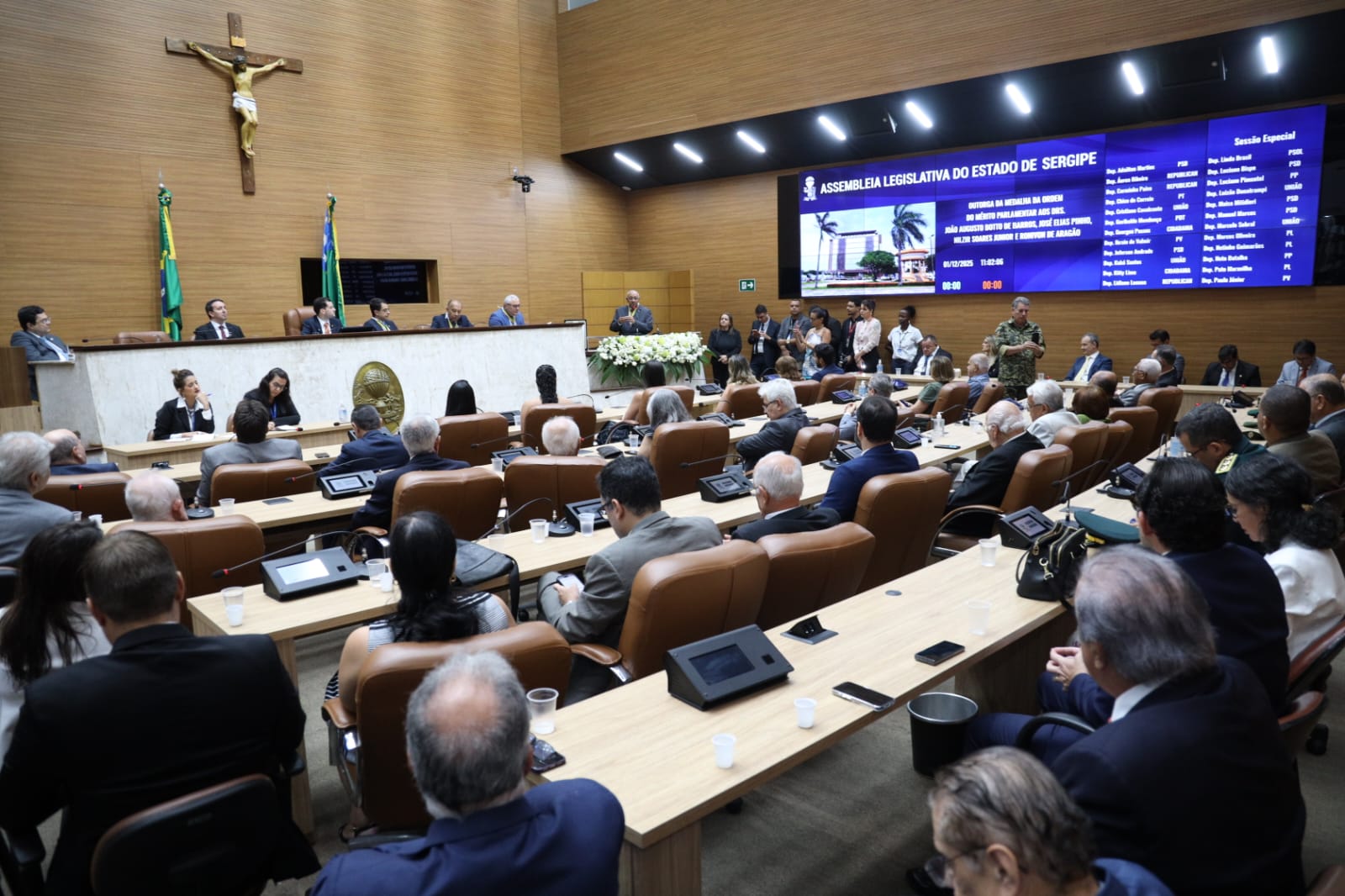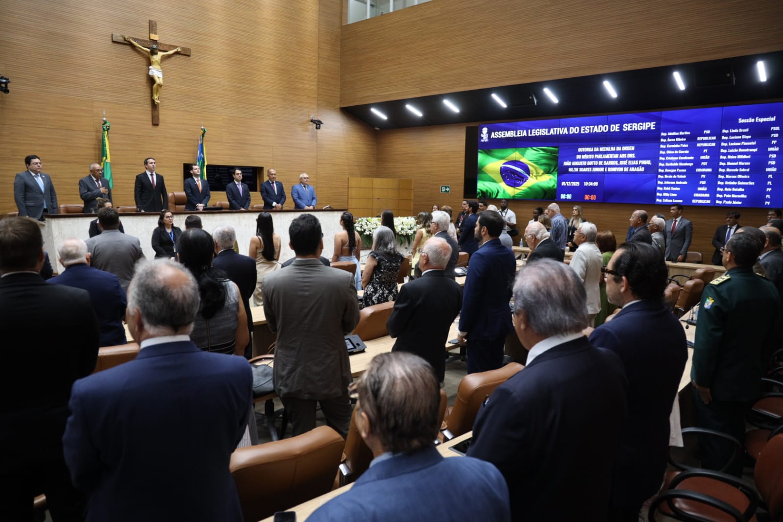 Nesta segunda-feira, 1º de dezembro, foi realizada a Sessão Especial que concedeu a Medalha da Ordem do Mérito Parlamentar a importantes figuras do setor jurídico sergipano. Foram agraciados o Procurador-Geral de Justiça do Ministério Público de Sergipe (MPSE), Nilzir Soares, o promotor de Justiça, Elias Pinho, o juiz federal, Ronivon Aragão, e o advogado João Augusto Botto. A cerimônia foi proposta pelo presidente da Assembleia Legislativa de Sergipe (Alese), deputado Jeferson Andrade (PSD), em parceria com o deputado Neto Batalha (PP) e a ex-deputada Susana Azevedo, atual presidente do Tribunal de Contas do Estado de Sergipe (TCE/SE).