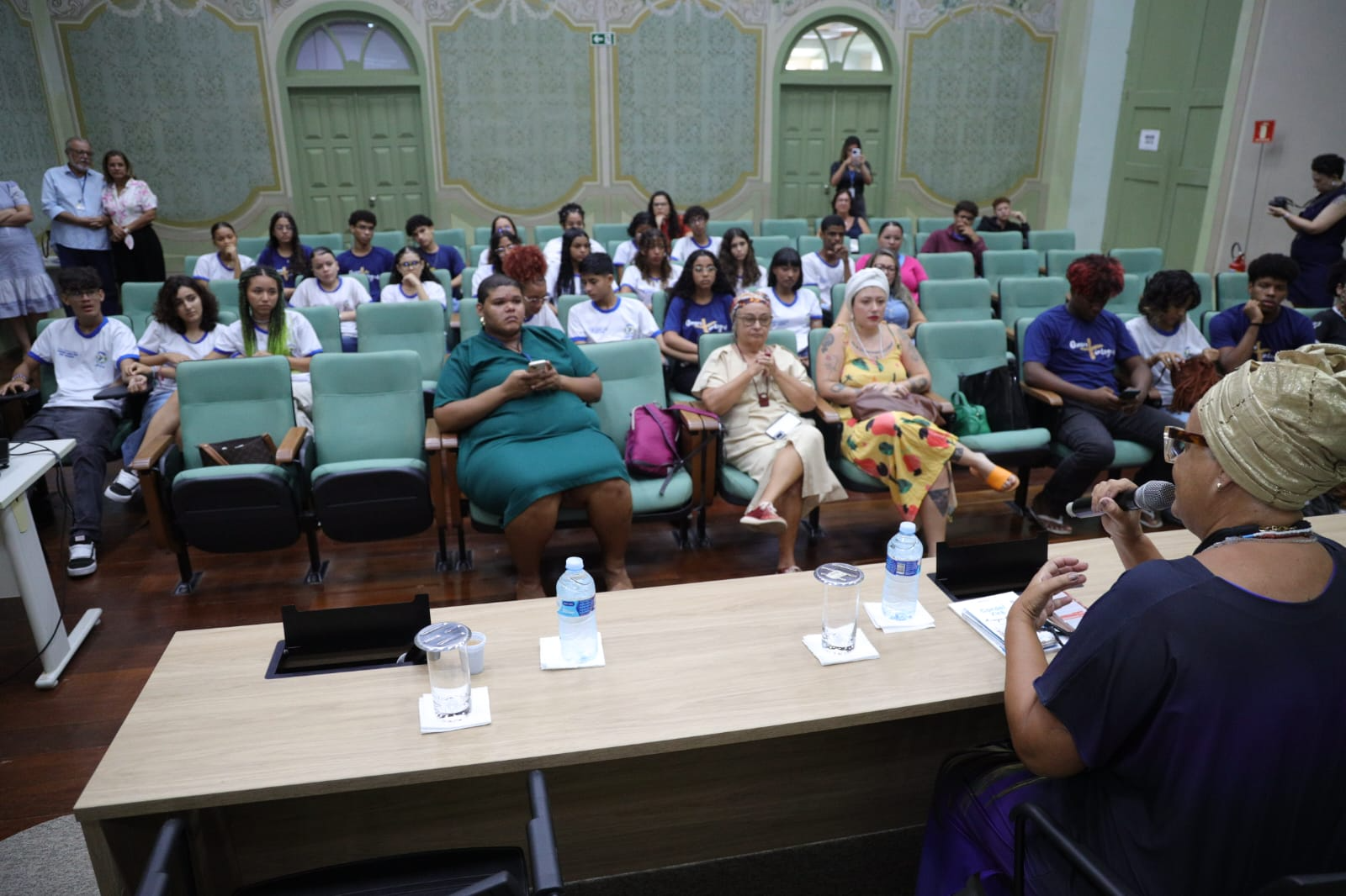 “A gente sabe que são temas, muitas vezes, espinhosos, né? E que nem sempre a gente consegue estar dialogando, trocando. Então, ter um espaço como esse, da Escola do Legislativo, é importante para a gente poder desmistificar preconceitos, combater o racismo, o racismo religioso. Então, falar da religiosidade, principalmente religiosidade afro-brasileira, ancestralidade, ritos, divindades, trazer essa informação e conhecimento para poder desmistificar muitas coisas que ficam no imaginário das pessoas e os estudantes que estão em formação precisam absorver, adquirir esse conhecimento”, pontuou.
