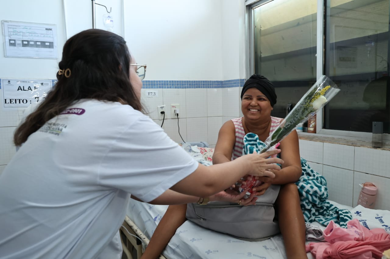 O setor de Oncologia do Huse realiza, em média, 2.300 consultas ambulatoriais por mês e cerca de 300 atendimentos diários, entre consultas, sessões de quimioterapia e radioterapia. Entre as pacientes beneficiadas está Natália de Jesus Menezes, que expressou gratidão pelo gesto solidário. “Receber esse kit me deixou muito feliz. Me senti mais confiante e com ainda mais vontade de viver”, afirmou emocionada.
