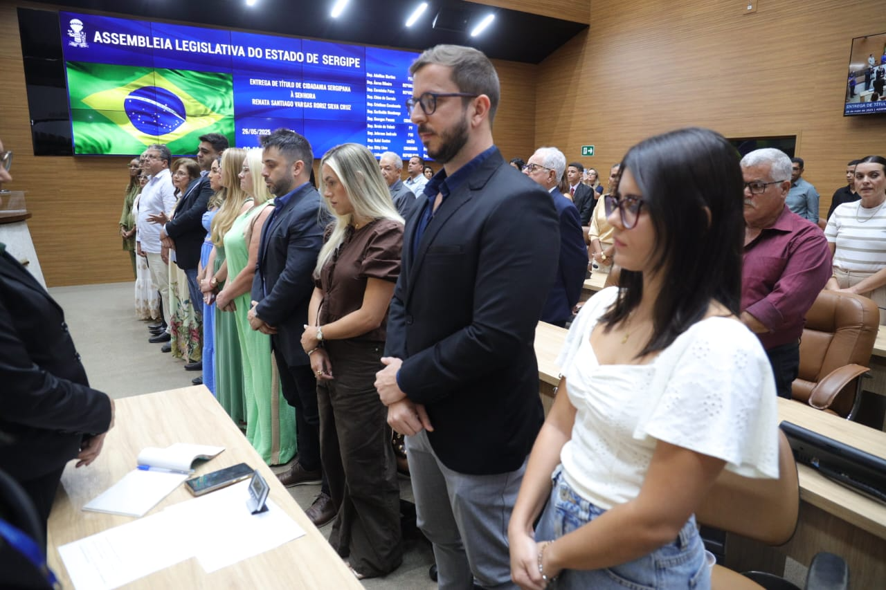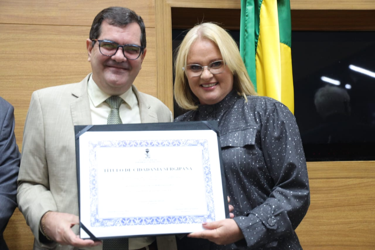 A Assembleia Legislativa de Sergipe (Alese) concedeu, nesta segunda-feira (26), o Título de Cidadania Sergipana à psicóloga Renata Santiago Vargas Roriz Silva Cruz, por iniciativa da deputada Áurea Ribeiro (Republicanos).