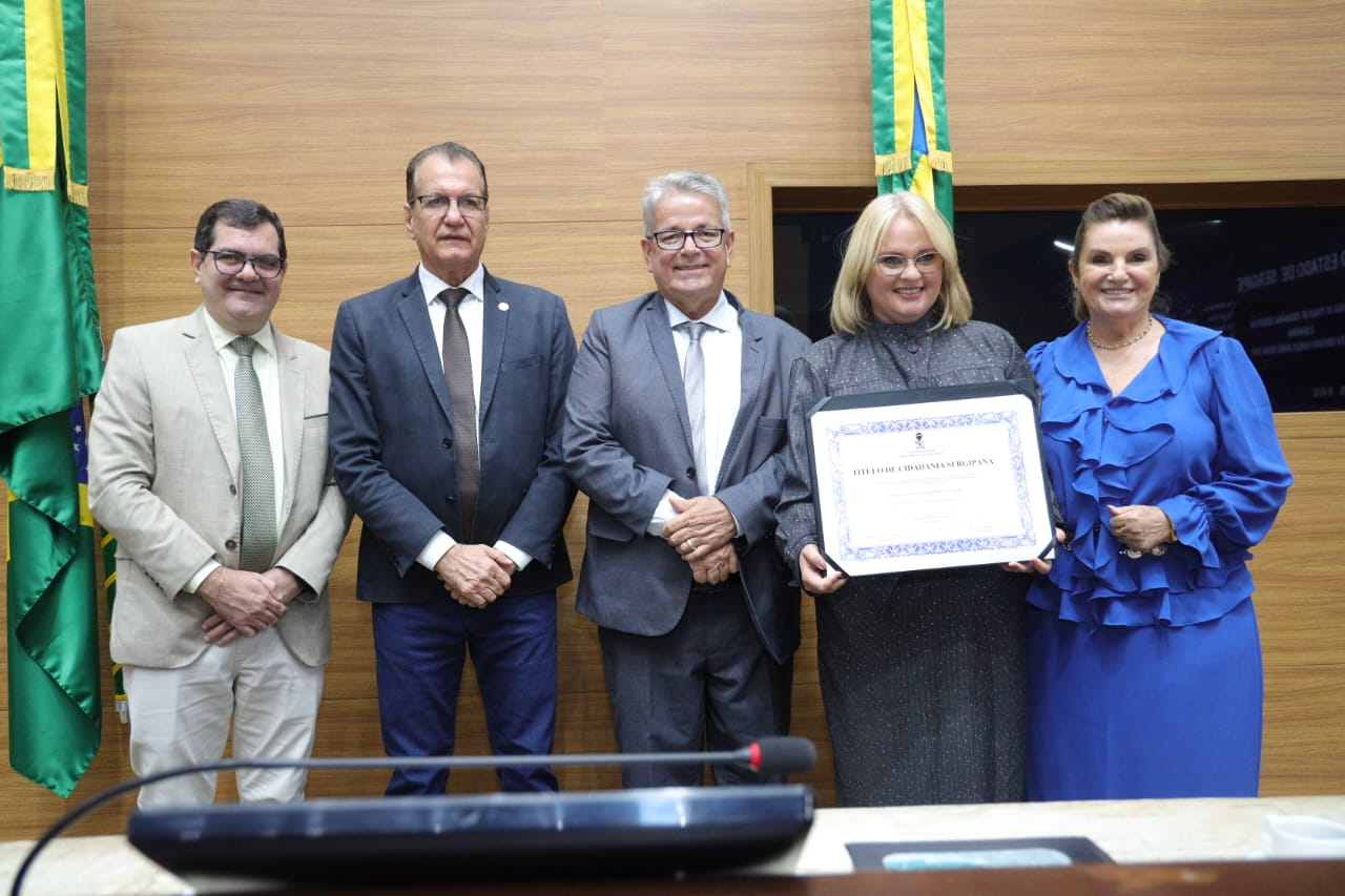 “Eu, orgulhosamente sergipano, e agora, ver minha esposa recebendo este Título é motivo de imenso orgulho. Quero agradecer de coração à deputada Áurea, que teve a sensibilidade de prestar essa homenagem tão merecida. Tenho absoluta certeza de que minha esposa merece ser reconhecida como cidadã sergipana, por tudo o que tem feito por este Estado. Ela é uma mulher dedicada, comprometida e, hoje, está profundamente emocionada, e não é à toa. Sempre que saímos e alguém pergunta: ‘Você é de Aracaju?’ eu respondia que sim, sou de Sergipe. E quando perguntavam sobre ela, eu dizia: ‘Ela é curitibana.’ E muitas vezes ela demonstrava um certo incômodo com isso, não por negar sua origem, mas porque tinha, e tem, um imenso orgulho de viver em Sergipe, de ter construído sua vida aqui. Por isso, essa homenagem é mais do que justa. É o reconhecimento dos sergipanos por tudo que ela representa. Agora, oficialmente, ela também é sergipana. De coração ela sempre foi, e hoje isso se torna uma verdade de direito”, assim se expressou o esposo da homenageada em nome da família.