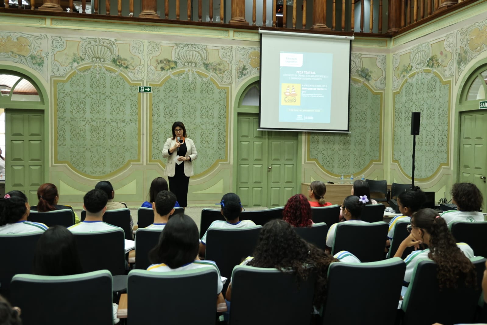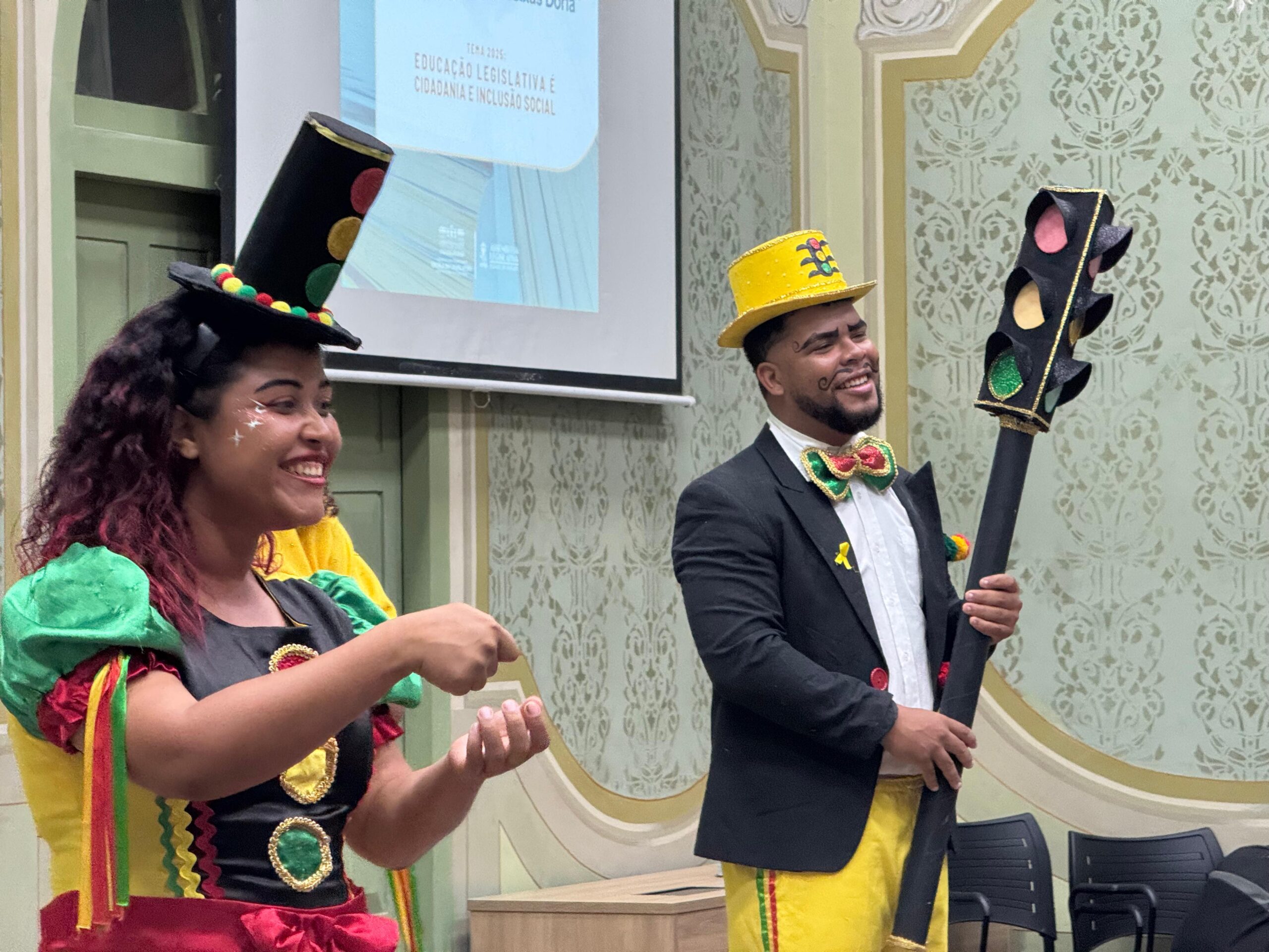 Segundo a diretora da Elese, Telma Pimentel, foi uma semana muito produtiva. “Hoje 15 de maio é comemorado o Dia da Educação Legislativa por meio de uma lei de 2024. Nós buscamos fortalecer o trabalho da educação legislativa com a realização de palestras e debates iniciados na segunda-feira, destacando a cidadania e a inclusão social. Tivemos a visita dos alunos de Nossa Senhora das Dores quando falamos sobre democracia e sobre educação legislativa. Ontem tivemos uma palestra inclusiva, muito impactante com a professora Cristina sobre uma situação que acontece no cotidiano e a gente não se toca que causa constrangimento às pessoas com deficiência auditiva. Hoje teremos uma palestra sobre o Estatuto da Criança e do Adolescente. Agradeço a parceria da SMTT, que trouxe o grupo teatral Cones para de forma lúdica nos mostrar os cuidados e deveres que temos em relação à criança e ao adolescente”, informa.